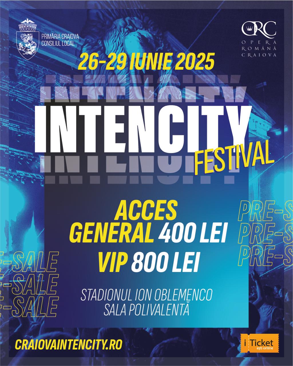 Abonamentele pentru cele patru zile de festival pot fi achiziționate acum la cel mai mic preț pe site-ul festivalului https://craiovaintencity.ro/, pe platforma https://iticket.ro/ și de la agenția Operei Române Craiova de la Sala Polivalentă din Craiova. În cadrul campaniei presale, prețul abonamentului acces general este 400 de lei, iar pentru cei care doresc să se bucure de muzică în condiții VIP, prețul abonamentului este 800 de lei.