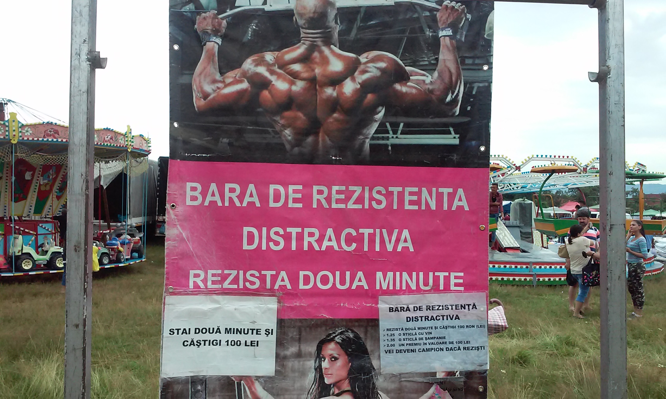 Lume peste lume, maldăre de marfă, femei, copii, Baloanebătrâni, curioşi, gură casă, mese-ntinse, corturi, maşini, mașinuțe, roata norocului, biciclete, trotinete, triciclete, care, căruţe, şarete, arbalete, arcuri, praștii, mingi, rachete, palete, dischete, păpuşi, baloane, trigoane, căluşei, tir cu puşca, salteaua gonflabilă, ponei călușei!