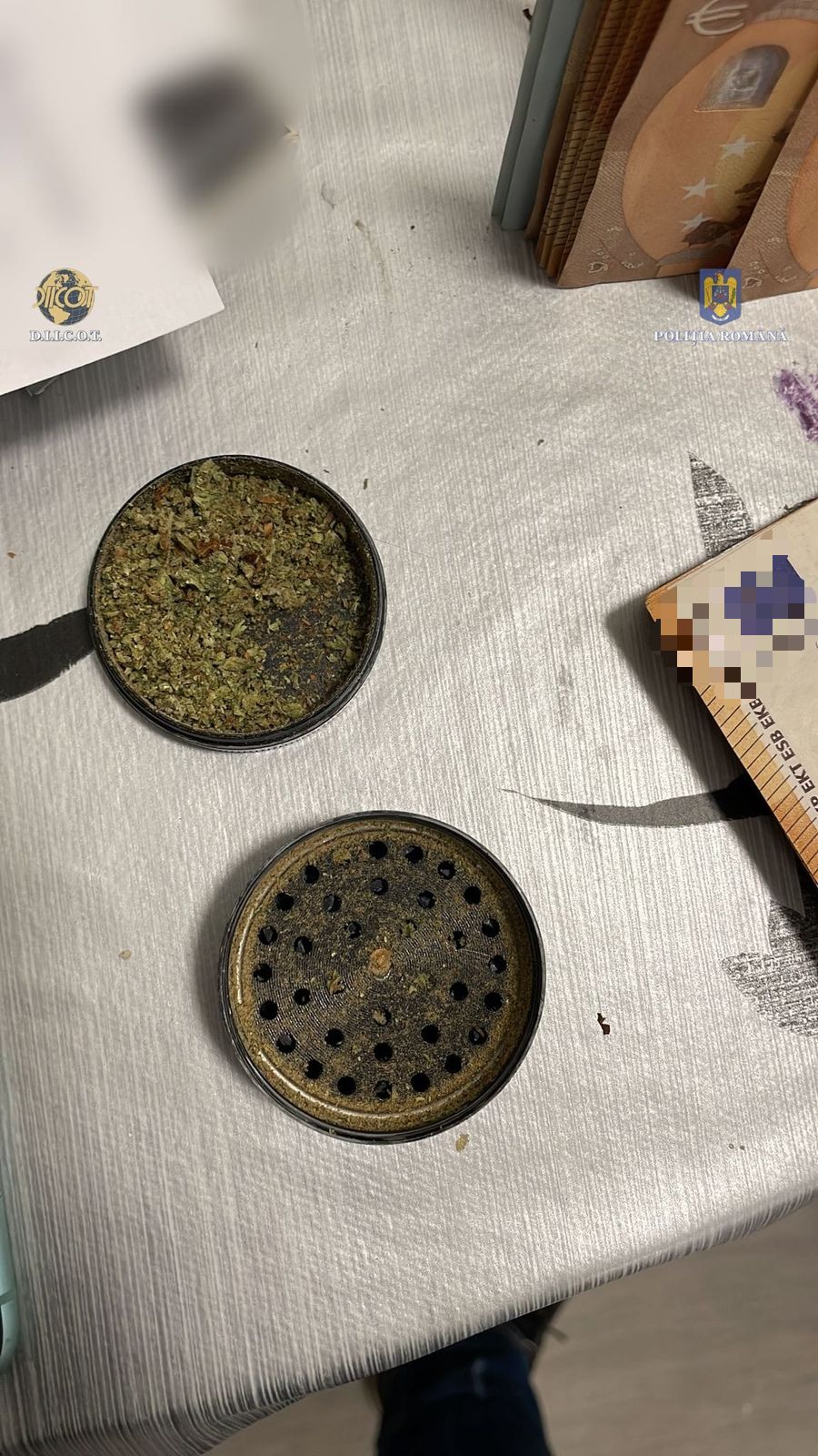 În urma percheziţiilor efectuate, au fost descoperite și ridicate 123 de bile de staniol, care ar fi conținut aproximativ 130 de grame de cannabis, două recipiente în care s-ar fi aflat aproximativ 40 de grame de cannabis, două grindere şi două cântare electronice.