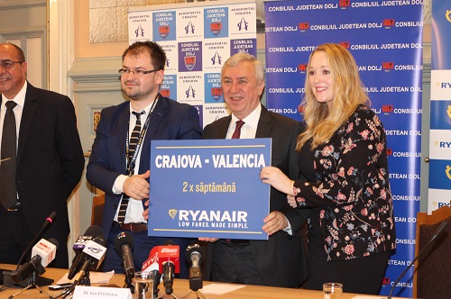Reprezentanții celei mai mari companii aeriene din Europa -„Ryanair” au anunțat astăzi, 17 februarie 2016, în cadrul unei întâlniri cu autoritățile județene, că noua rută Craiova-Valencia și retur va fi operată începând cu luna noiembrie a acestui an, cu o frecvență de 2 zboruri /săptămânal – în zilele de joi și duminică.