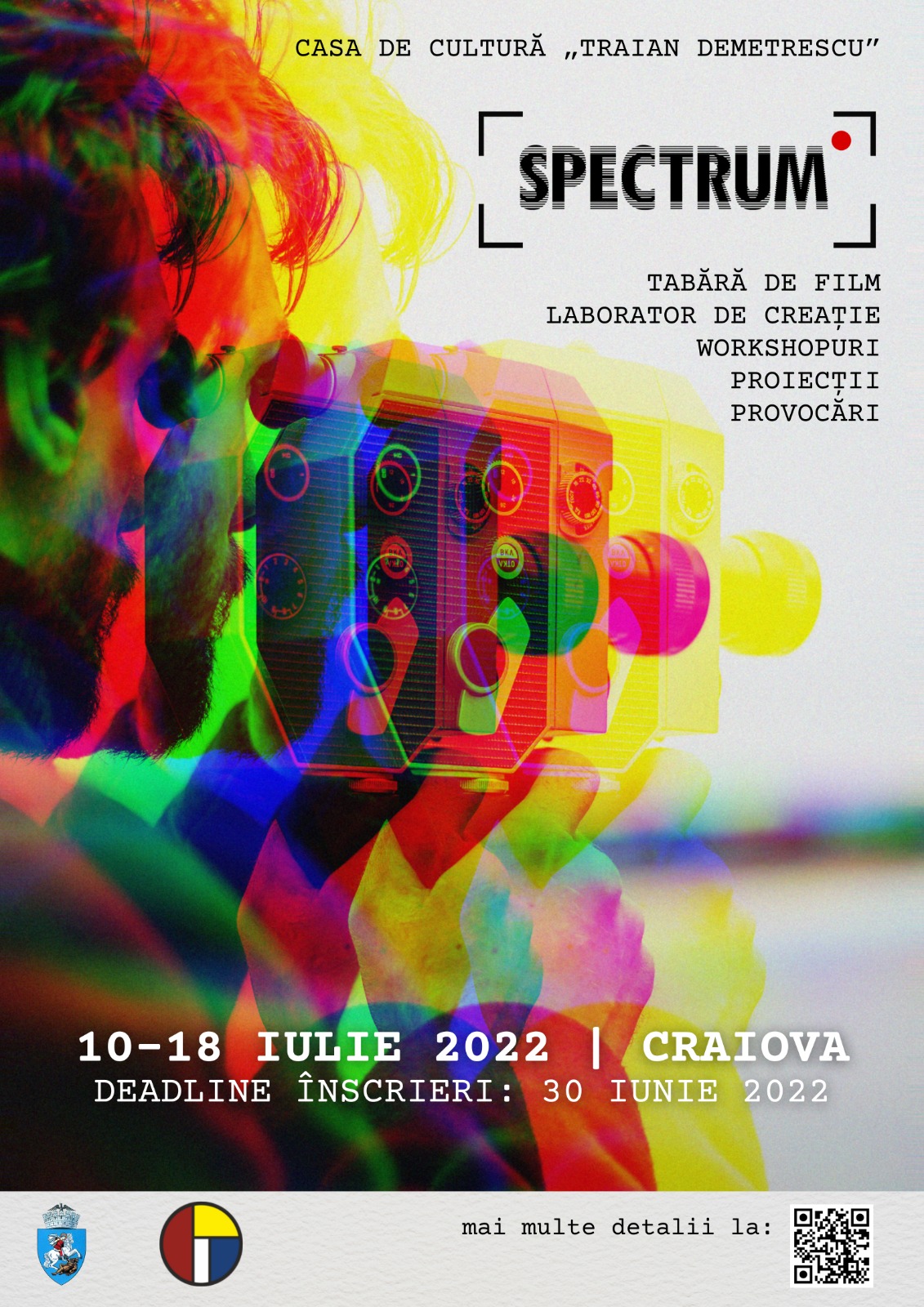 Casa de Cultură „Traian Demetrescu” din Craiova organizează, în perioada 10-18 iulie 2022, Tabăra de Film SPECTRUM, în care iubitorii de film au ocazia să experimenteze atmosfera din timpul producției unui film, fiind implicați în toate etapele producției cinematografice: elaborarea scenariului, filmare, montaj, sonorizare, realizare copie standard. La proiect vor participa tineri din toată țara, cu vârste cuprinse între 18-35 de ani, care, îndrumați de specialiști în domeniul cinematografiei, vor învăța să își dezvolte abilități, care îi pot ajuta în cariera pe care o vor aborda în viitor.