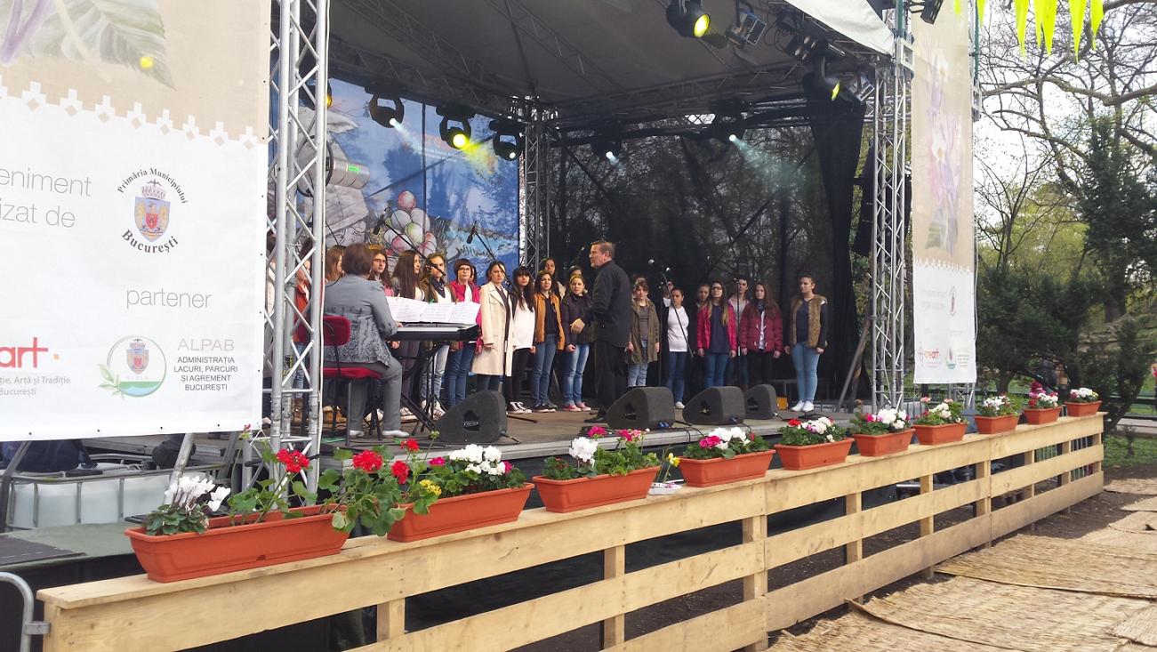 Corul de Copii Radio a susţinut miercuri 8 aprilie un concert în Parcul Cişmigiu, în cadrul Festivalului Tradiţii şi Flori de Sărbători.