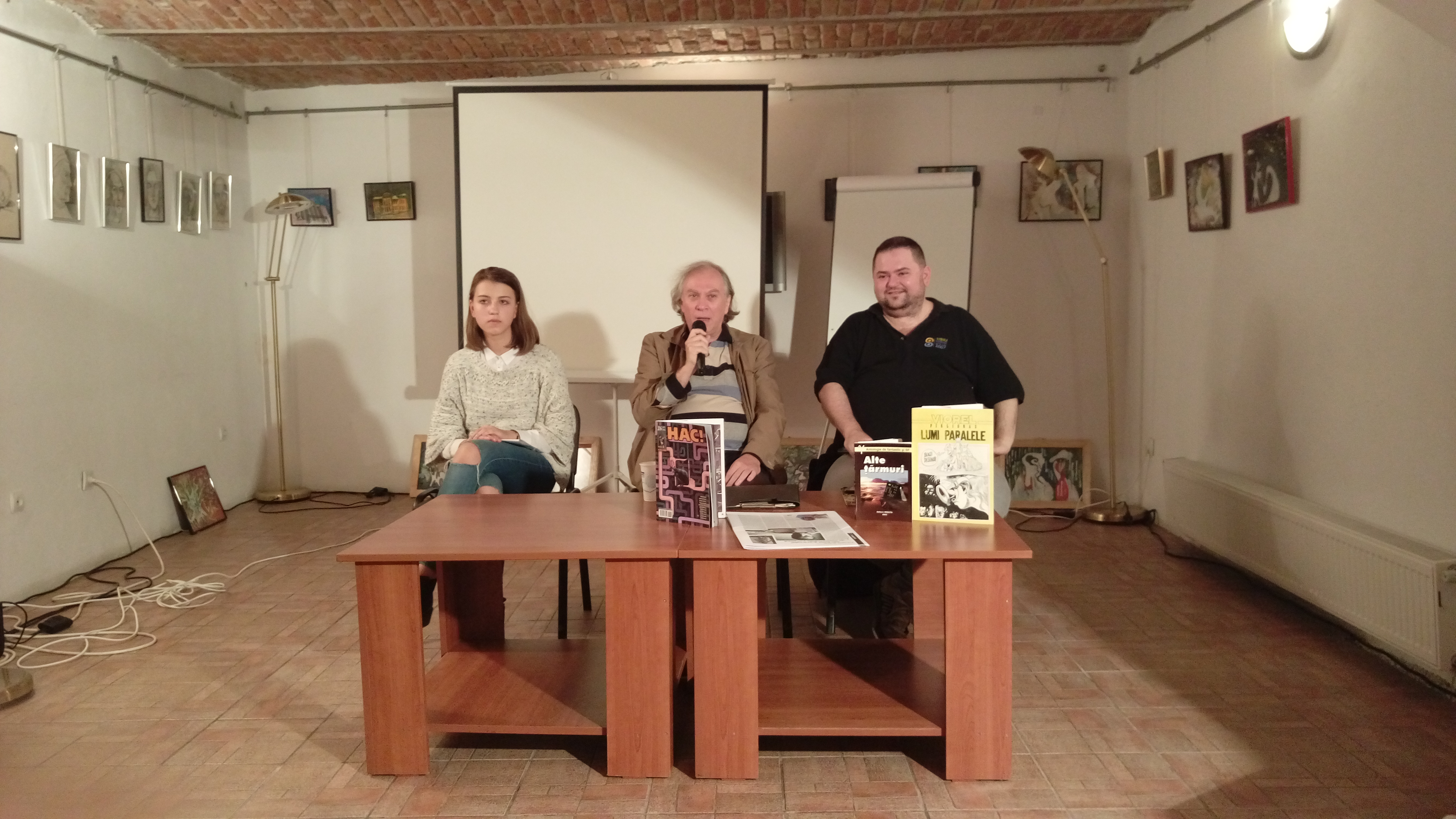 Viorel a citit două proze: una veche, publicată încă înainte de 1989 (se numește „Între nasturi” și poate fi găsită în antologia „Avertisment pentru liniștea planetei” apărută la Editura „Albatros”) și alta recentă, cu un nume ciudat: „Precaritatea nivelei cu bulă de aer”.