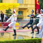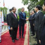 Șeful executivului de la Bucureşti a fost primit de omologul său Nguyễn Xuân Phúc în cadrul unei ceremonii oficiale. Ceremonia depunerii de flori a Monumentul Eroilor şi vizitarea mausoleului preşedintelui Ho şi Min fiind amânate pentru ziua următoare din cauza unei ploi torenţiale. Dacian Cioloş va fi primit astăzi şi de preşedintele republicii Tran Dai Quang şi secretarul Partidului Comunist Nguyễn Phú Trọng. În cadrul discuţiilor va fi analizat stadiul relaţiilor bilaterale, dar şi subiecte de actualitate din plan internaţional şi regional.