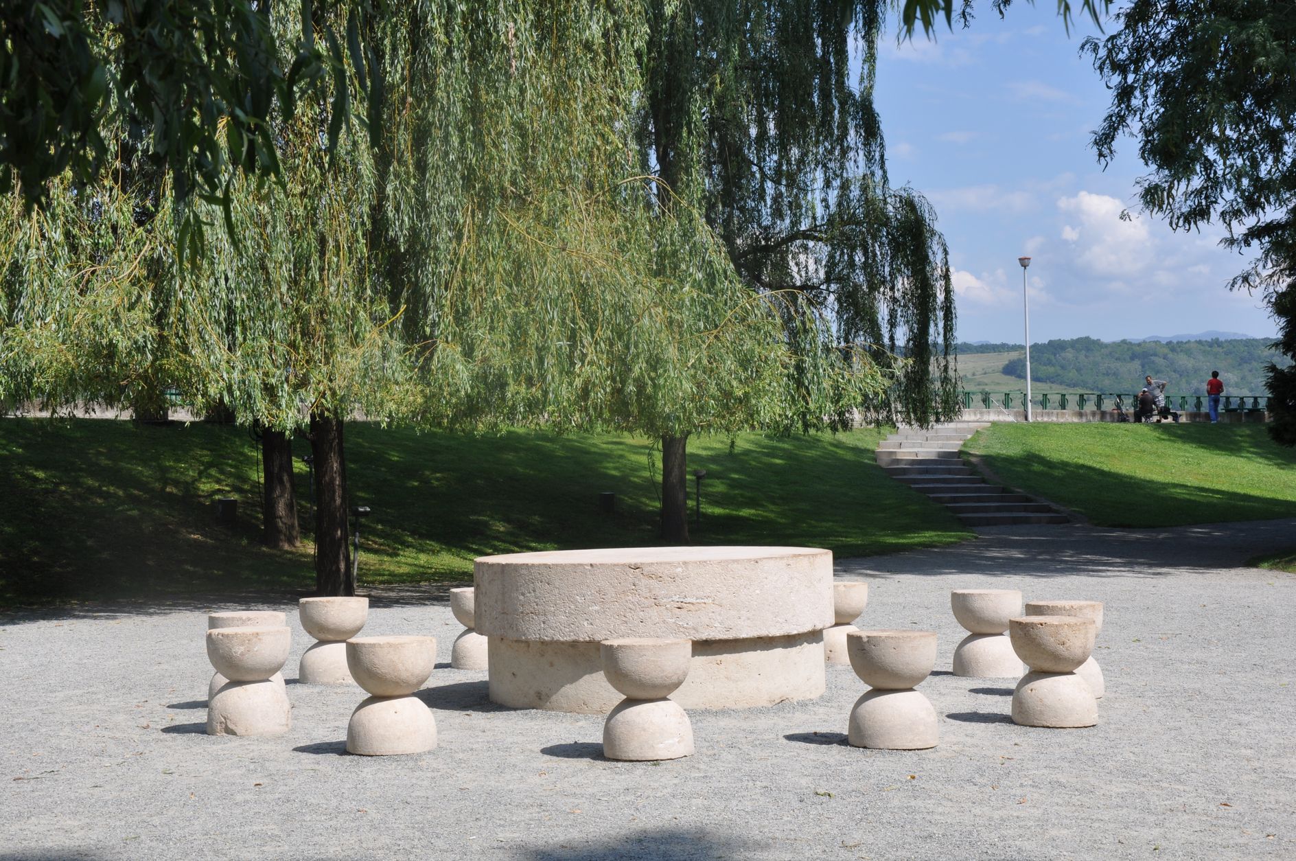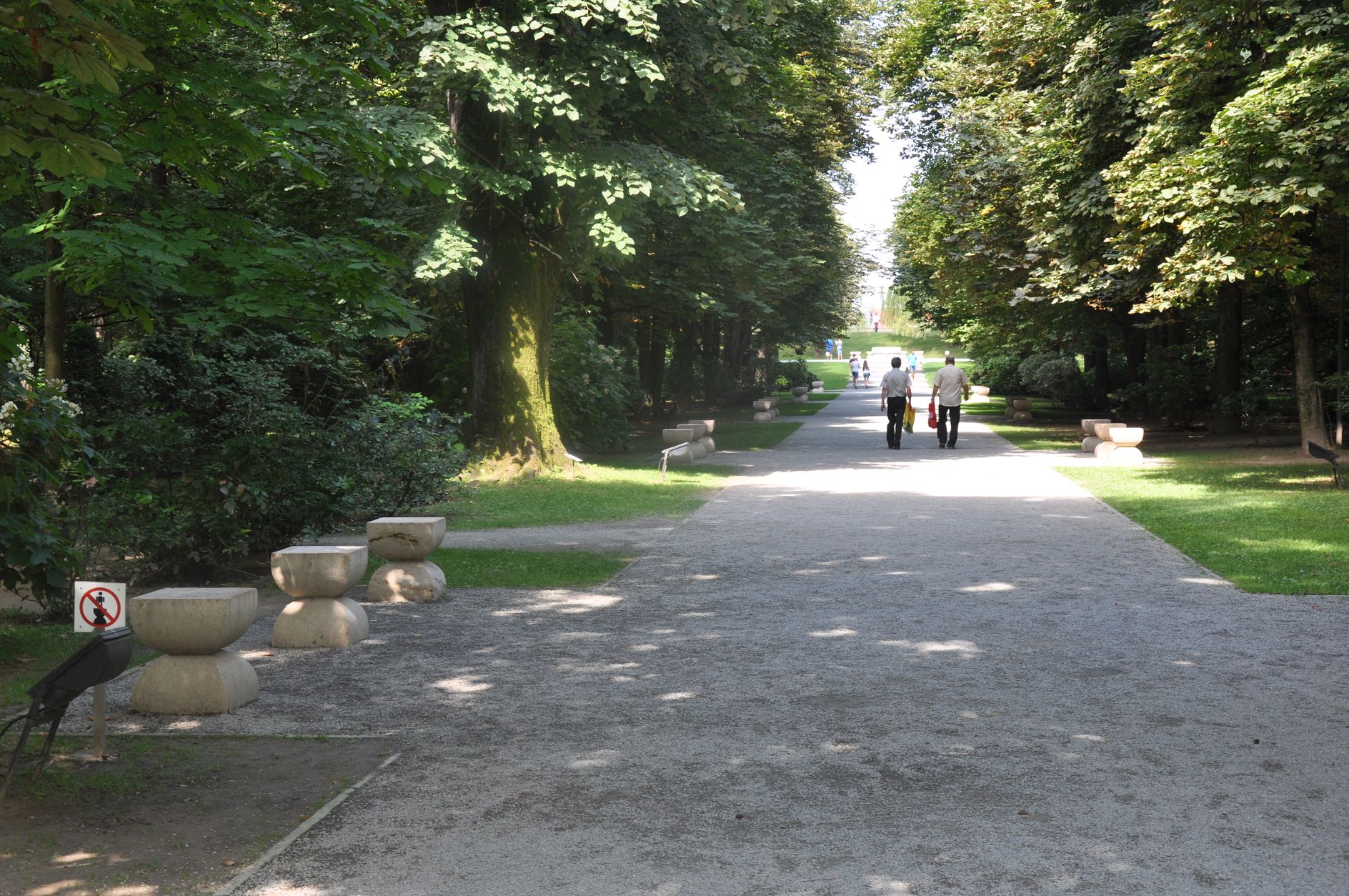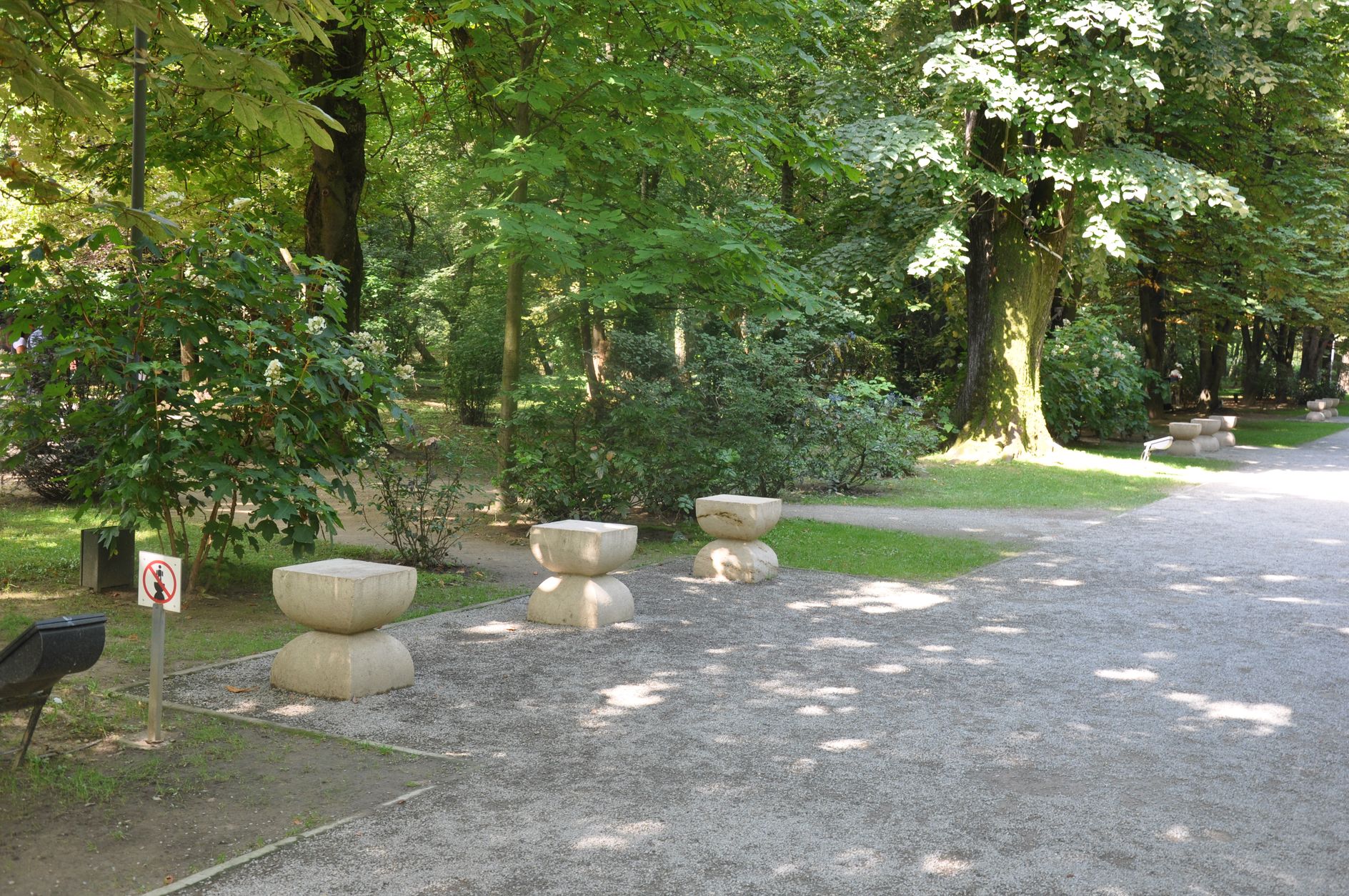 Aleea scaunelor este compusă din două bănci de piatră ?i  scaune din piatră, dispuse de o parte ?i de alta a aleii în grupuri de câte trei.