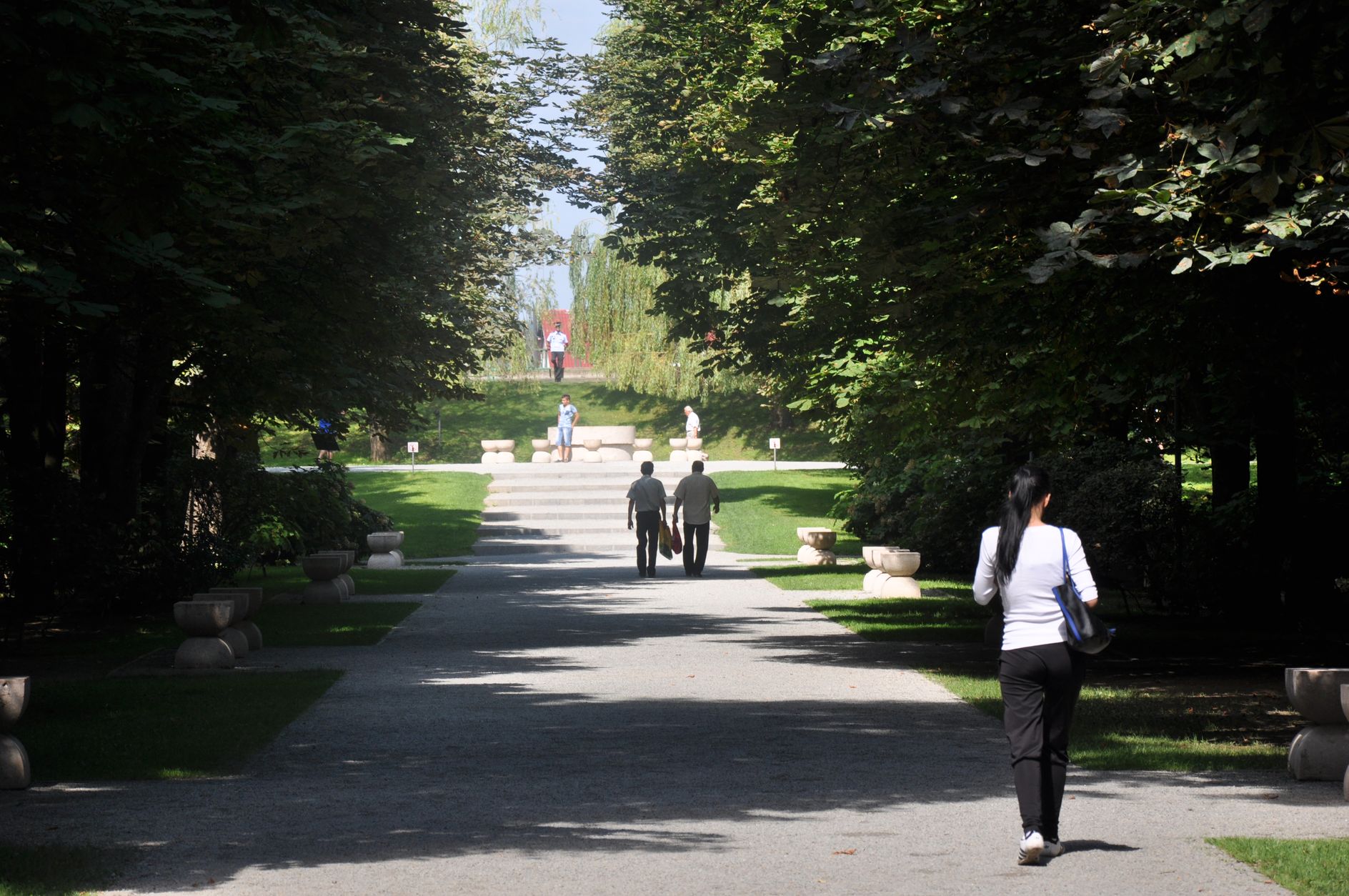 Cele patru componente sculpturale ? Masa tăcerii, Aleea scaunelor, Poarta sărutului ?i Coloana fără sfâr?it ? sunt dispuse pe aceea?i axă, orientată de la apus spre răsărit, cu o lungime de 1275 m.
