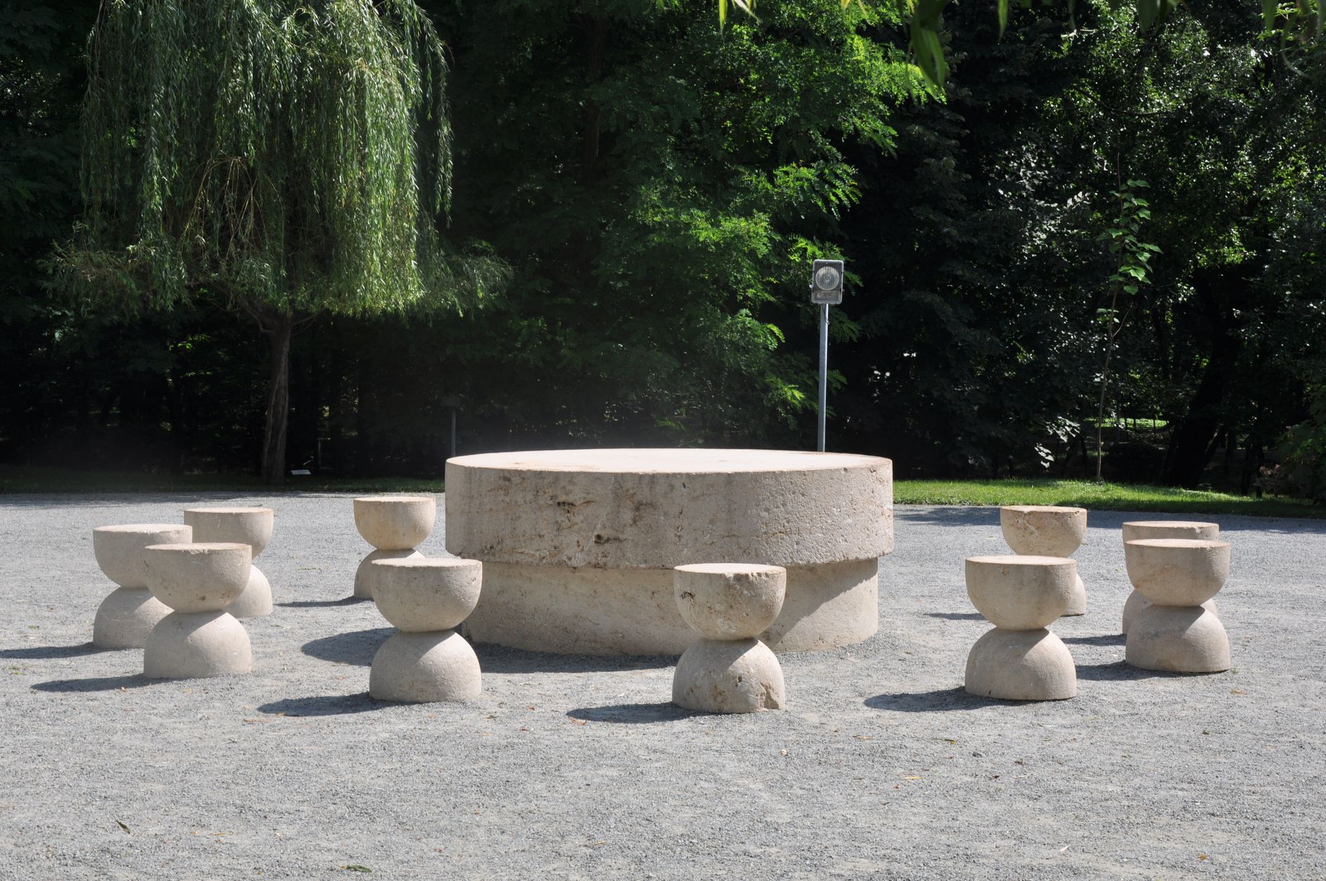 Masa tăcerii, lucrată în calcar, reprezintă masa dinaintea confruntării cu bătălia la care urmează să participe combatan?ii, iarTimpul este dispus în clepsidrele-scaune care-l măsoară