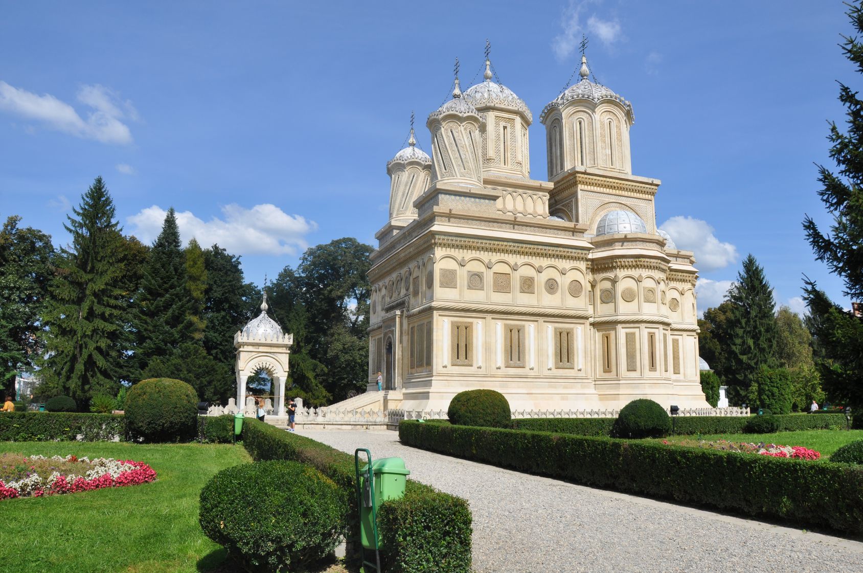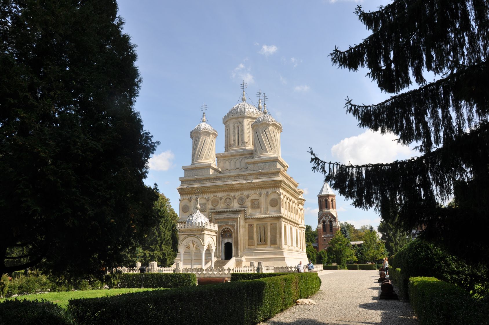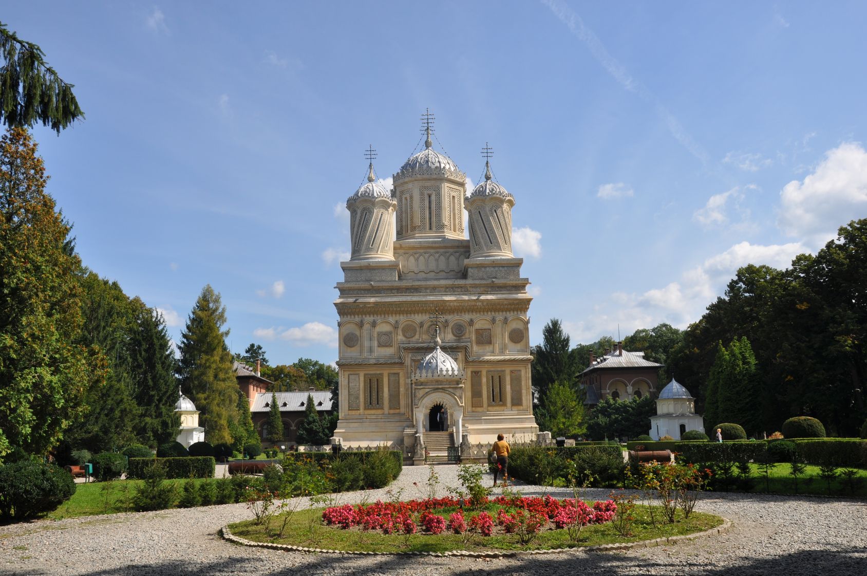 Biserica episcopală, cunoscută sub denumirea de Mănăstirea Curtea- de- Arge?, o ctitorie a lui Neagoe Basarab (15121517), este caracterizată printr-un naos larg ?i turla înaltă deasupra naosului. Aici se găsesc mormintele regilor Carol I ?i Ferdinand I (împreună cu so?iile lor), iar in anul 2003 a fost repatriat si Regele Carol al doilea impreuna cu Elena Lupescu, aceasta fiind inhumata in cimitirul manastirii.