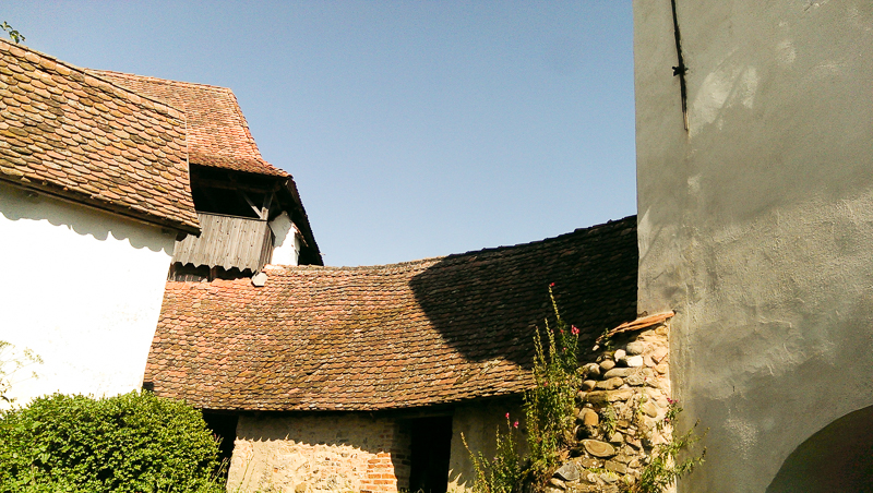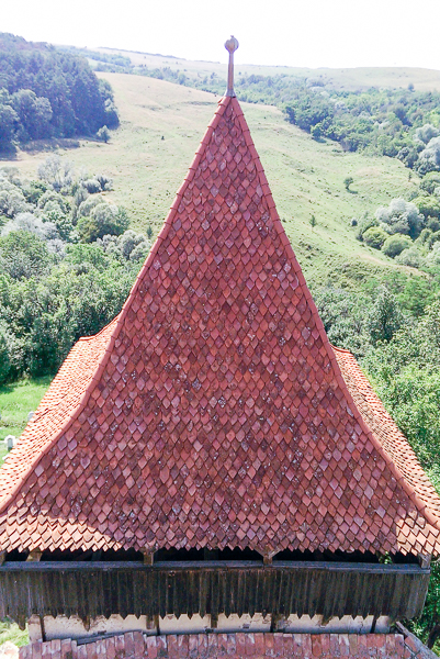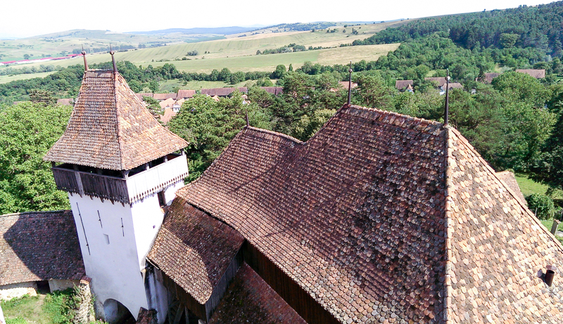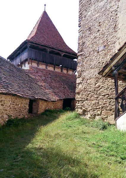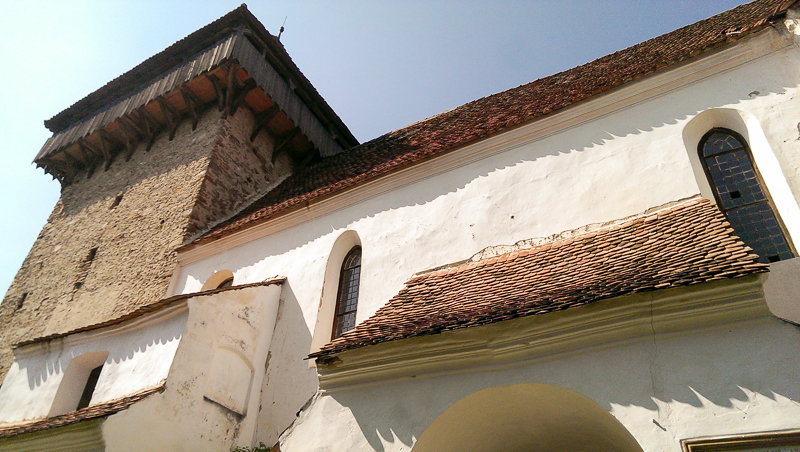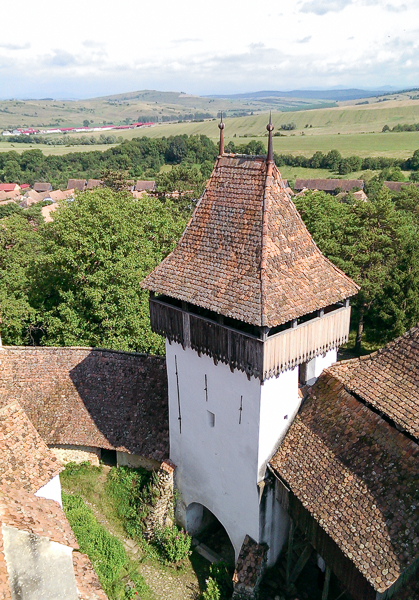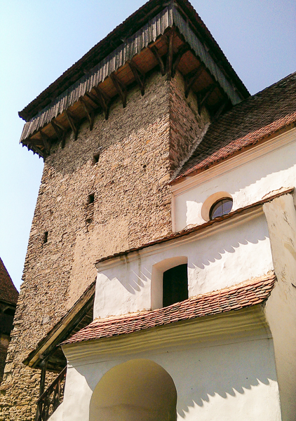 A?a că, după vreo 40 ?i ceva de kilometri prin pădure cu bicicleta, am coborât în sat, cum altfel decât stropi?i din cap pînă în picioare, pe un drum pavat cu piatră de râu, pentru ca apoi să urcăm dealul la Cetatea ?ărănească, dintre zidurile căreia se înal?ă impunător Turnul Bisericii Evanghelice Fortificate.