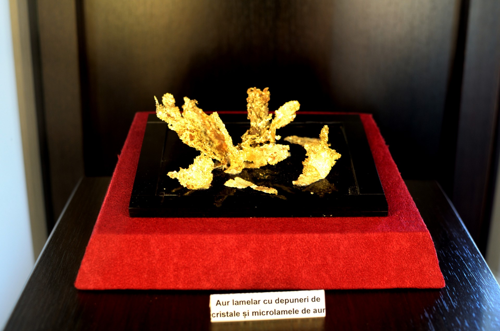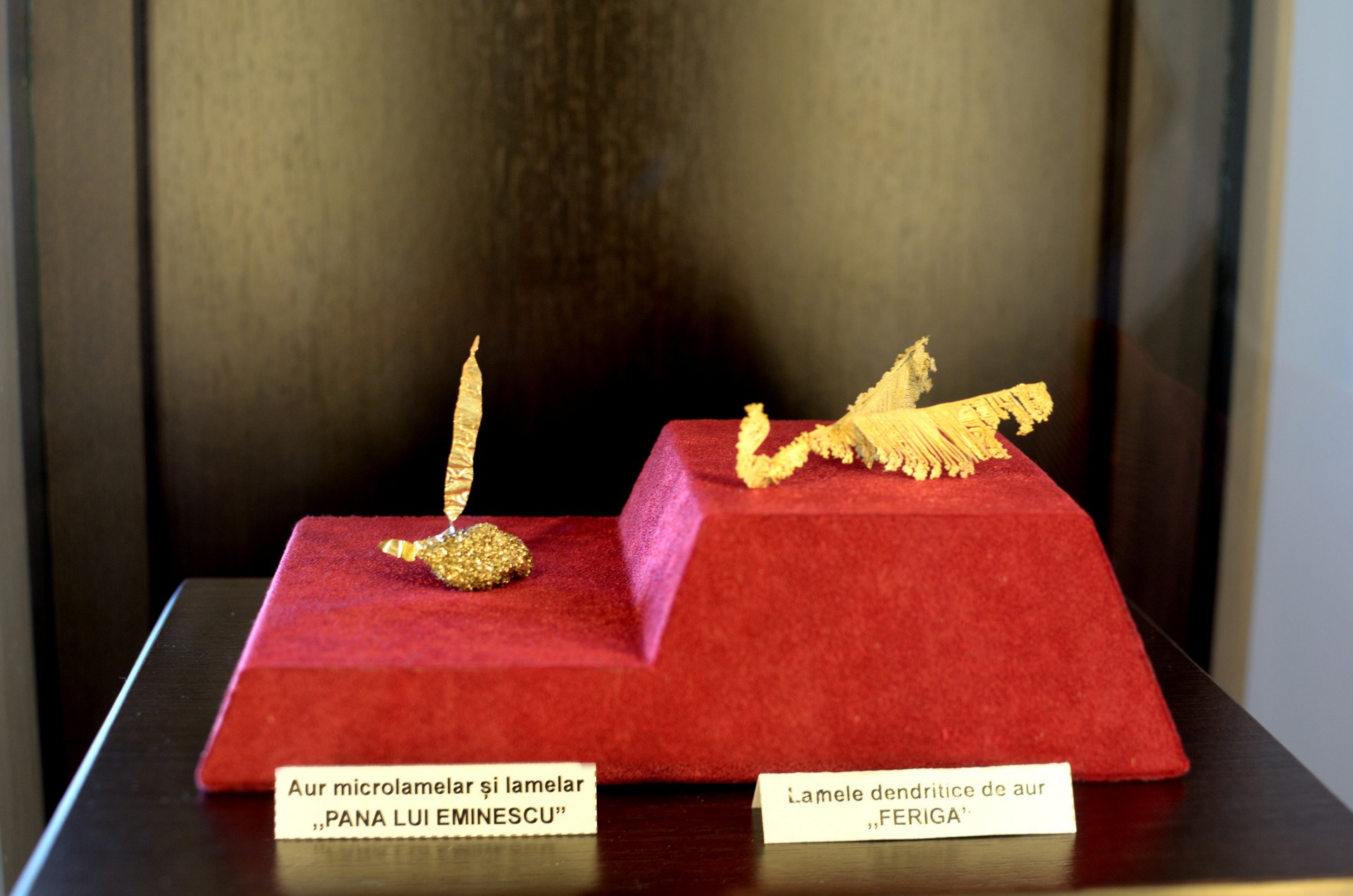 Majoritatea z?c?mintelor de aur din România se reg?sesc în muzeu cu exponate reprezentative pentru toate tipurile de mineralizatii. Z?c?mintele din zona Bradului sunt cel mai bine reprezentate, de aici provenind şi cele mai spectaculoase forme. Între acestea, se remarc? unele care sugereaz? vizitatorului plante, animale sau alte obiecte: frunze, flori, şarpe, c?ţel, aripi de pas?re, tun, harta României.