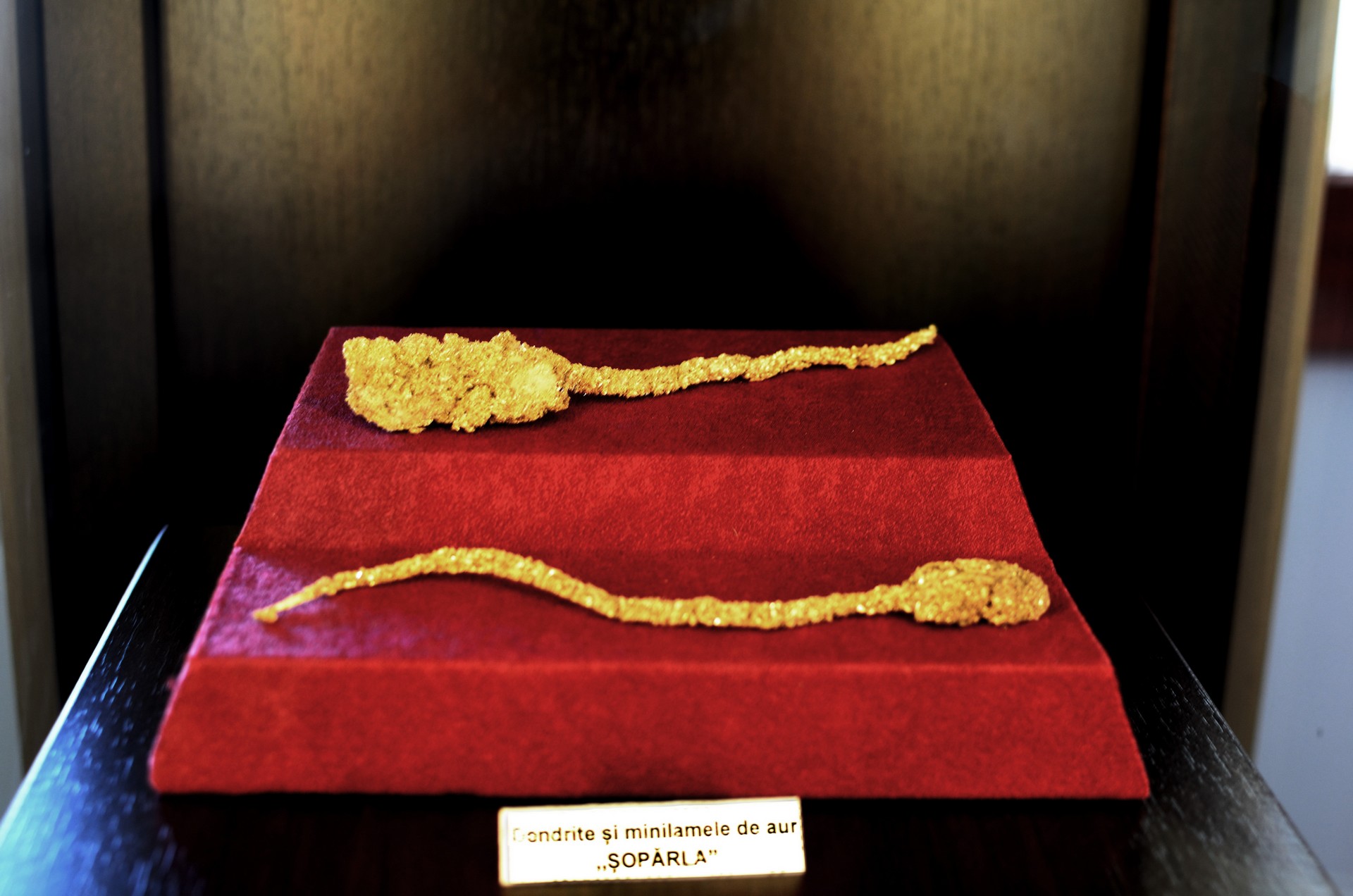 În s?lile muzeului vizitatorul are prilejul de a cunoaşte aurul într-o ipostaz? inedit?, aceea de minereu, în care el apare sub diverse forme: fin dispersat, liber sau concrescent cu alte minerale, lamele, filamente, dendrite, granule şi rarele combinatii chimice naturale ale aurului cu telurul, între care silvanitul şi nagyagytul s-au identificat pentru prima dat? în lume în z?c?minte din Muntii Apuseni.