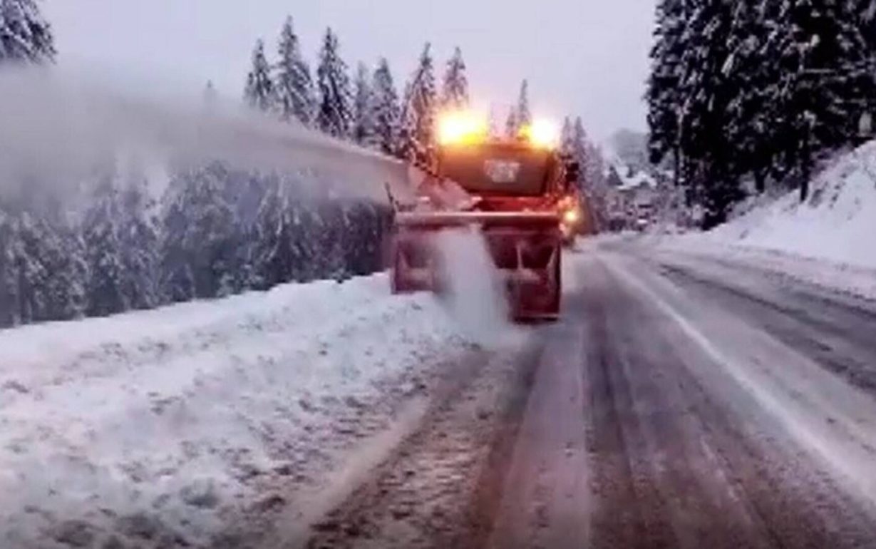 Patru utilaje de deszăpezire intervin, la această oră, pe DN 67 C, în zona montană Rânca din județul Gorj. Se acționează și cu material antiderapant.