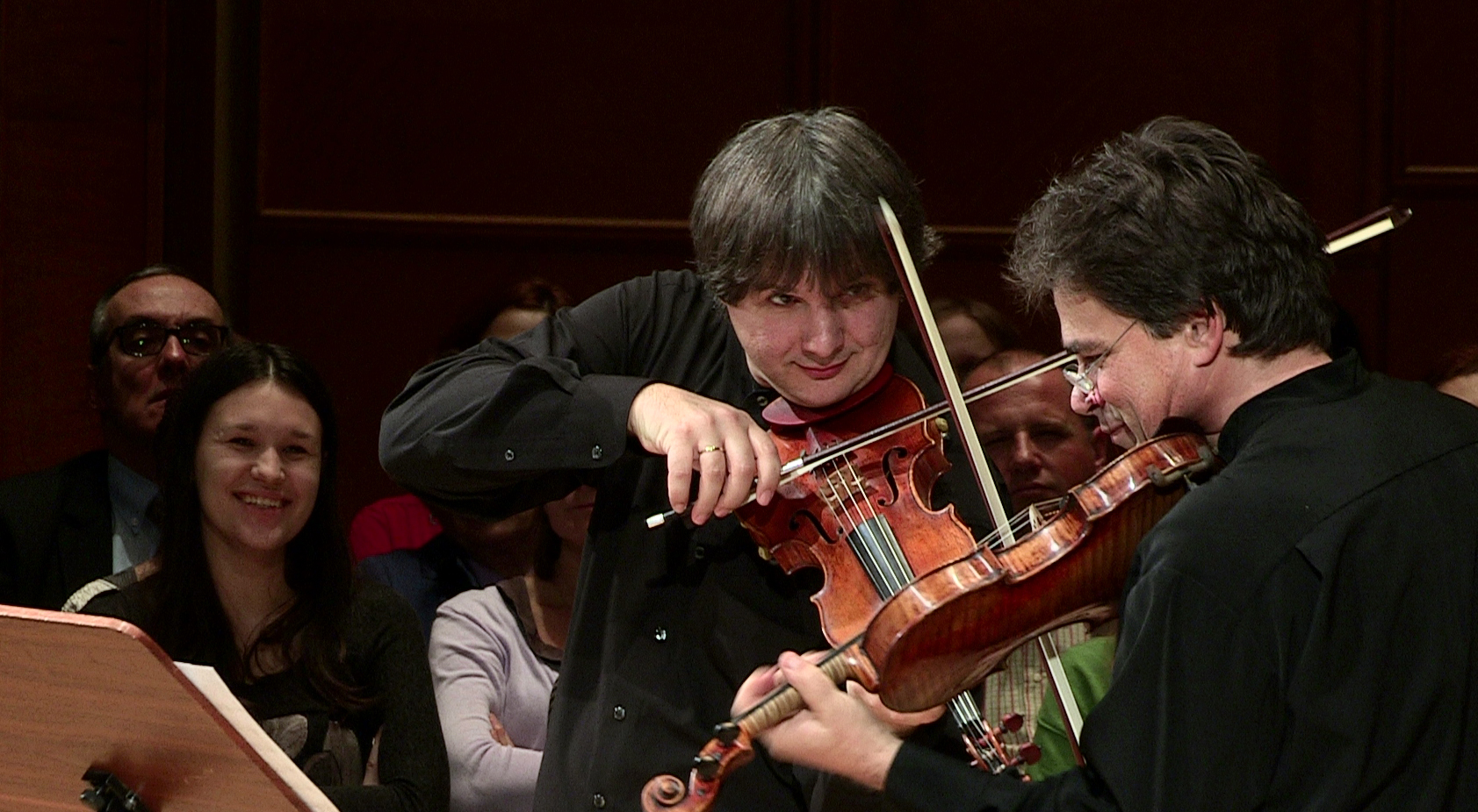 Protagoniştii primei manifestări, ”DUELUL VIORILOR”, ce se va desfășura pe scena de concerte camerale din 1 Belgrave Square, sunt: violonistul Liviu Prunaru, concert-maestrul celebrei orchestre Royal Concertgebouw Amsterdam, care cântă pe vioara Stradivarius Pachoud şi violonistul Gabriel Croitoru, prof. univ. Dr. la Universitatea Naţională de Muzică Bucureşti, solist-concertist al Orchestrelor Radio România, care cântă pe vioara Guarneri del Gesu, instrument pus la dispoziție de Muzeul Național George Enescu, în patrimoniul căruia se află. Li se alătură pianistul Horia Mihail, unul din cei mai apreciaţi muzicieni români ai generaţiei sale, solist concertist al Orchestrelor Radio România.