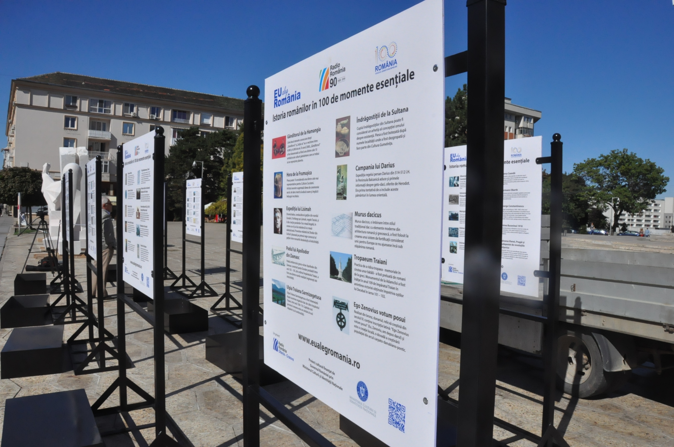 Lucruri frumoase se întâmplă începând de astazi, 25 septembrie 2018, timp de doua luni, pe esplanada Teatrului Național “ Marin Sorescu “ din Craiova, acolo unde poate fi vizitată expoziția Eu Aleg România- 100 de momente esenţiale din istoria românilor.