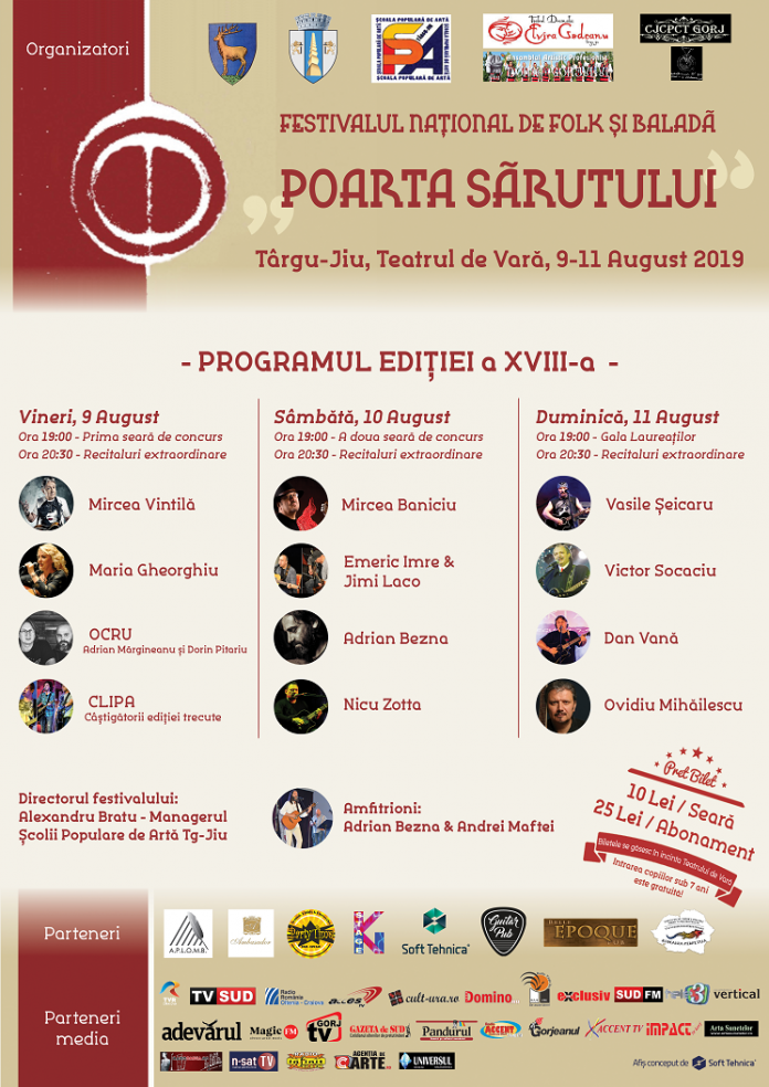 In aceasta seara debuteaza la La Tg.Jiu Festivalul Național de Folk și Baladă „Poarta Sărutului”, ediția a 18-a. Festivalul va avea loc în incinta Teatrului de Vară și se va desfășura sub formă de spectacol. Detalii are Daniela Diaconu de la Radio Oltenia Craiova: