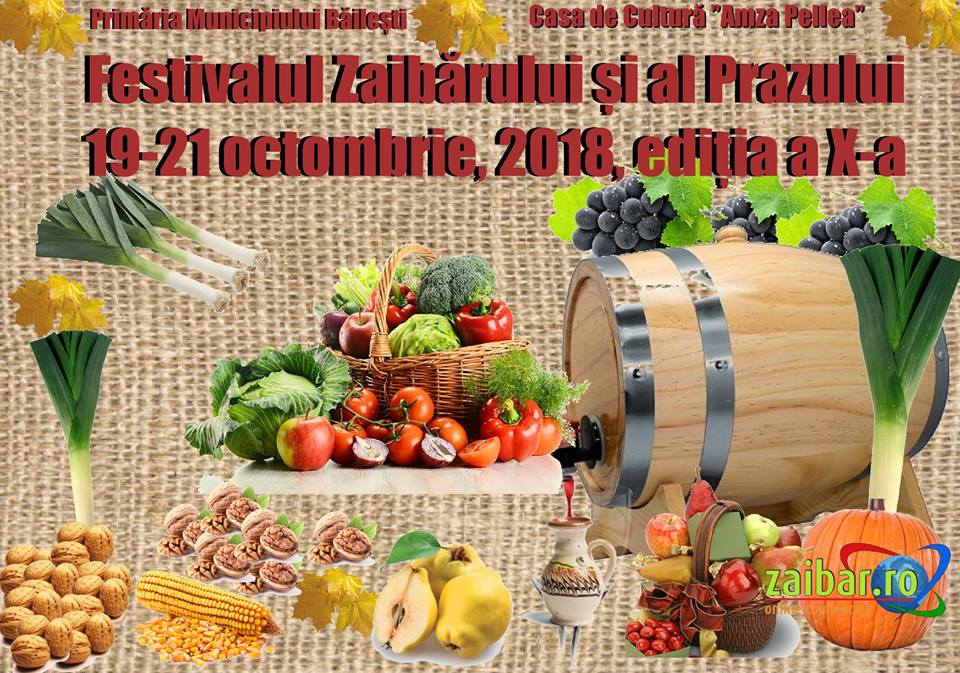 Primăria Municipiului Băilești, Consiliul Local Băilești și Casa de Cultură „Amza Pellea” organizează  ediția a X-a a Festivalului Zaibărului și al Prazului.