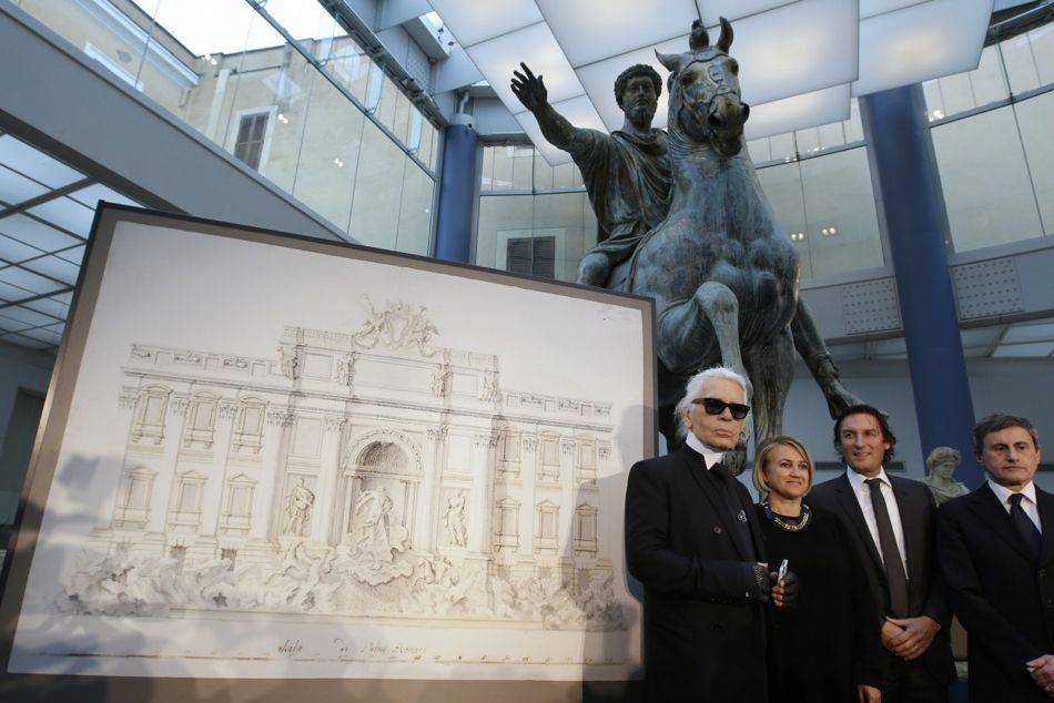 Marţi a avut loc ceremonia de inaugurare a fântânii, monumentul fiind renovat cu fonduri de peste 2 milioane de euro. Evenimentul s-a desfăşurat în prezenţa patronului casei de modă Fendi, Pietro Baccari, şi a lui Karl Lagerfeld, director artistic al Chanel şi al grupului italian.