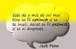 „Este de o mie de ori mai bine să fii optimist şi să te înşeli, decât să fii pesimist şi să ai dreptate.”