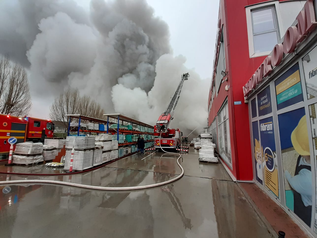 Incendiu devastator la un depozitu de materiale de construcții din Craiova