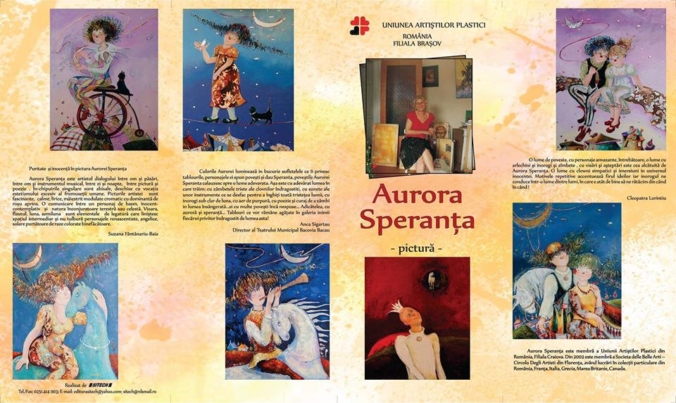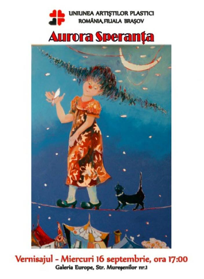 Miercuri, 16 septembrie 2015, ora 17,00 la Galeria Europe din Braşov – Str. Mureşenilor nr.1, are loc vernisajul expoziţiei ,, La poveşti cu Sora Soarelui…’’ semnată Aurora Speranţa.