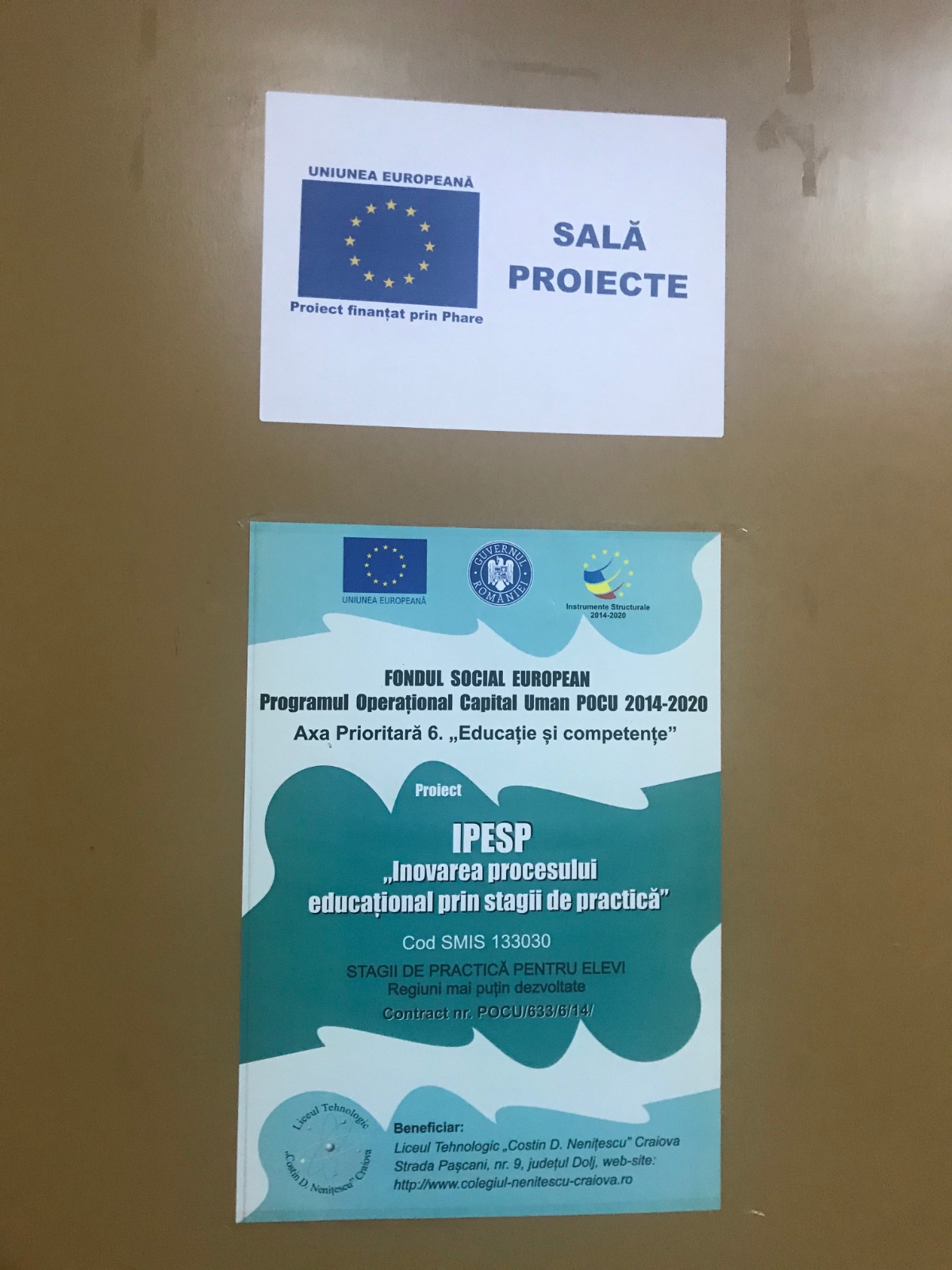 Liceul Tehnologic ”Costin D. Nenițescu” Craiova, în calitate de beneficiar, anunță finalizarea proiectului IPESP – ”Inovarea procesului educațional prin stagii de practica”- POCU/633/6/14/, Cod SMIS 133030, proiect cofinanțat din Fondul Social European, prin Programul Operațional Capitalul Uman 2014-2020 și desfășurat în perioada 07.10.2020-06.10.2022.