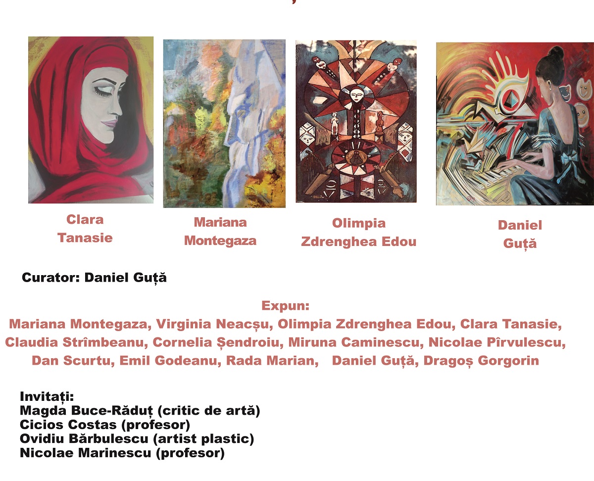 În cadrul expoziției, artiștii Mariana Montegaza, Virginia Neacșu, Olimpia Zdrenghea Edou, Clara Tanasie, Claudia Strîmbeanu, Cornelia Șendroiu, Miruna Caminescu, Nicolae Pîrvulescu, Dan Scurtu, Emil Godeanu, Rada Marian, Daniel Guță și Dragoș Gorgorin vor expune 26 lucrări, majoritatea picturi pe pânză cu dimensiuni cuprinse între 0,60 și 2 m.