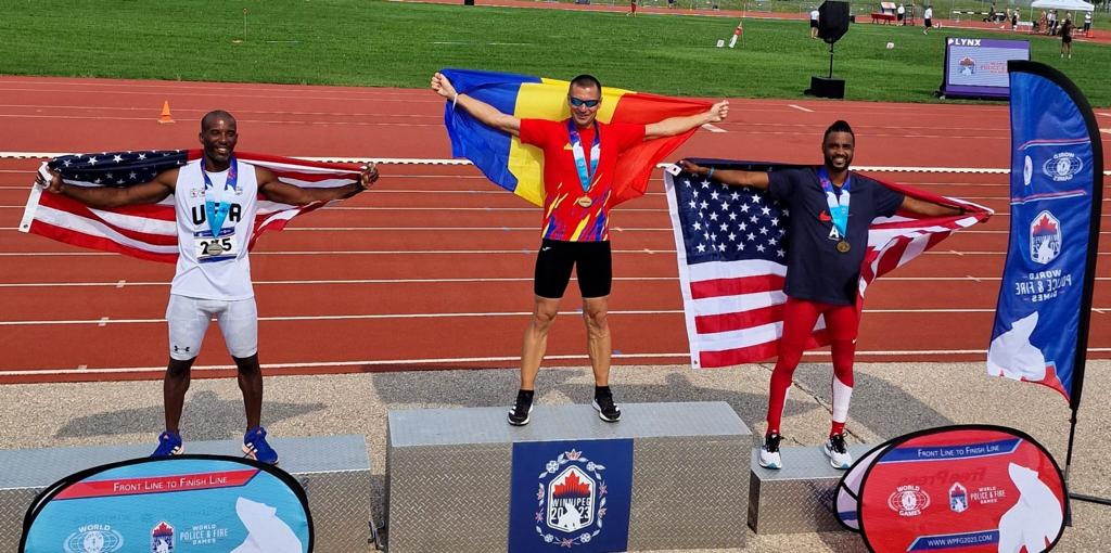 Lt. col. Adrian Bratu a devenit campion mondial la proba de 400 metri plat, câștigând medalia de argint la săritura în lungime și medalia de bronz la proba de 200 metri plat. Pompierul se află la cea de-a treia participare, în cadrul acestor jocuri, unde a mai cucerit 11 medalii.