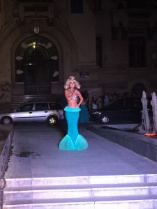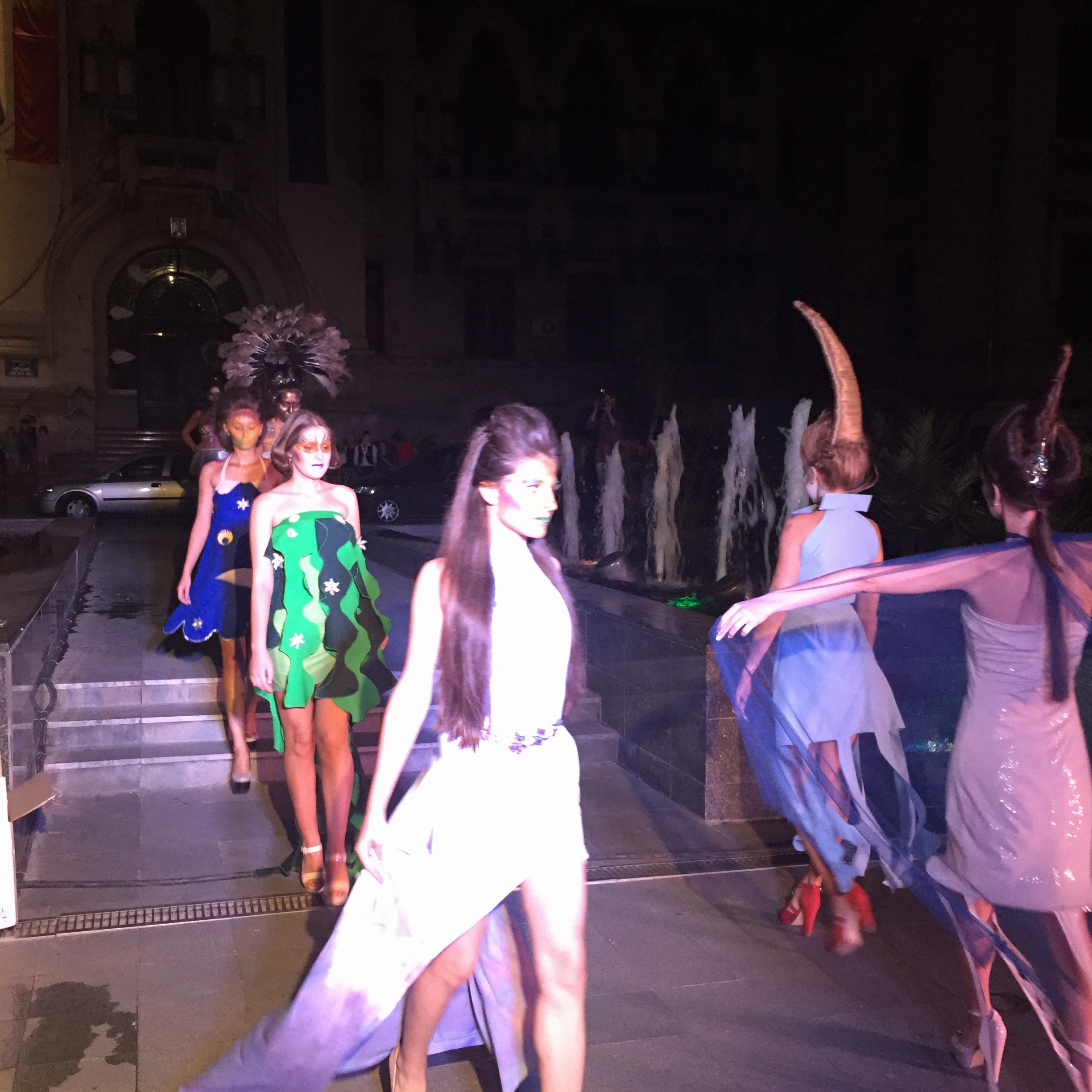 O feerie de culori in nuante marine s-a dezlantuit in aceasta seara, in Piata Mihai Viteazu din centrul Craiovei, iar prezentarea de moda a fost completata de cadrul perfect: modelele au defilat pe „podiumul” dintre fantanile arteziene din fata Prefecturii.
