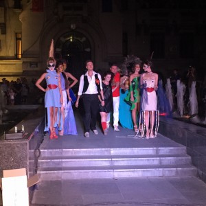 Colectia WATER FASHION este prima colectie Haute Couture a talentatului craiovean. Nici tinuta sa nu a fost mai prejos, designerul optand pentru piese clasice, elegante, completate de un accesoriu in ton cu tema festivalului: un rac pe post de brosa!