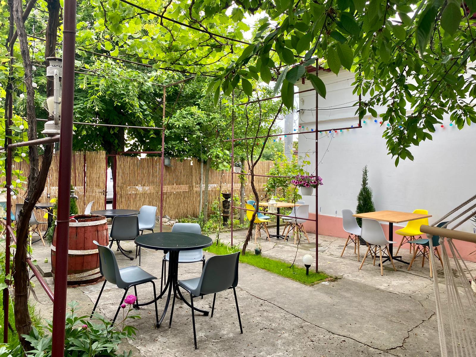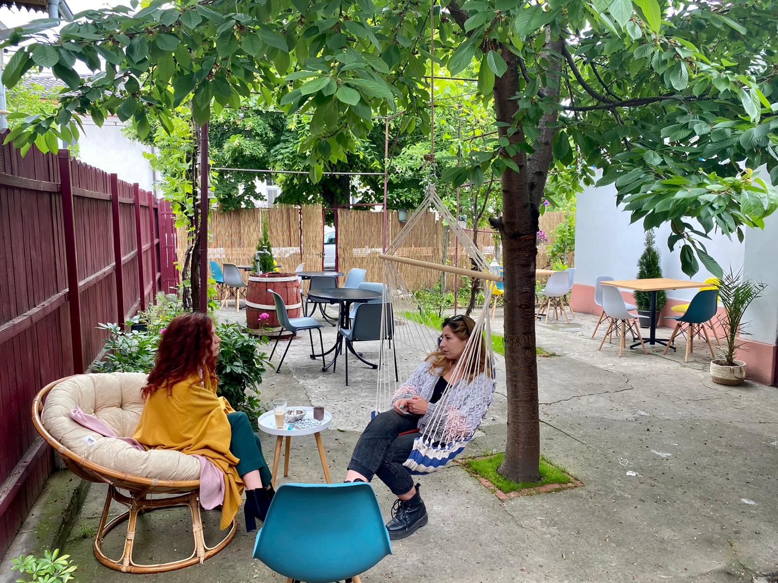 Anticafeneaua, cum o numește chiar proprietara, Carmen Paraschivu (foto), are o bucătărie în care clienții își pot prepara cafeaua sau ceaiul după bunul plac, o camera destinată celor care au nevoie de un birou la care să lucreze, o bibliotecă și un spațiu pentru conferințe sau ateliere. Ultima cameră îi întâmpină, în present, pe studenții de la Drept, care vin împreună cu un avocat și simulează procese, apoi pe alții care fac meditație la engleză, dar și pe cei care participă la un curs de dicție. Iar, în zilele calde, clienții își pot găsi relaxarea într-un hamac, la umbra unui cireș, crescut chiar în mijlocul curții.
