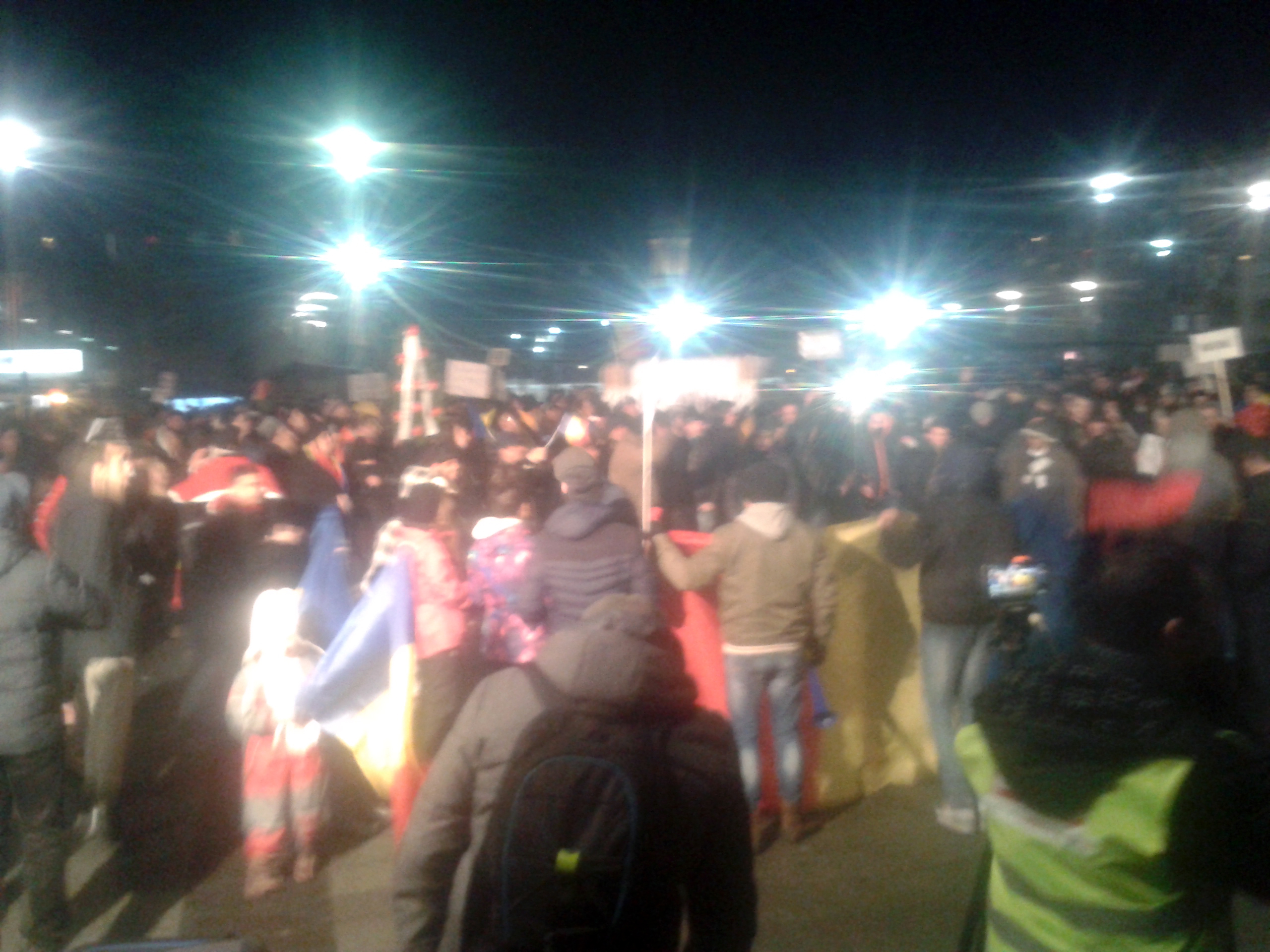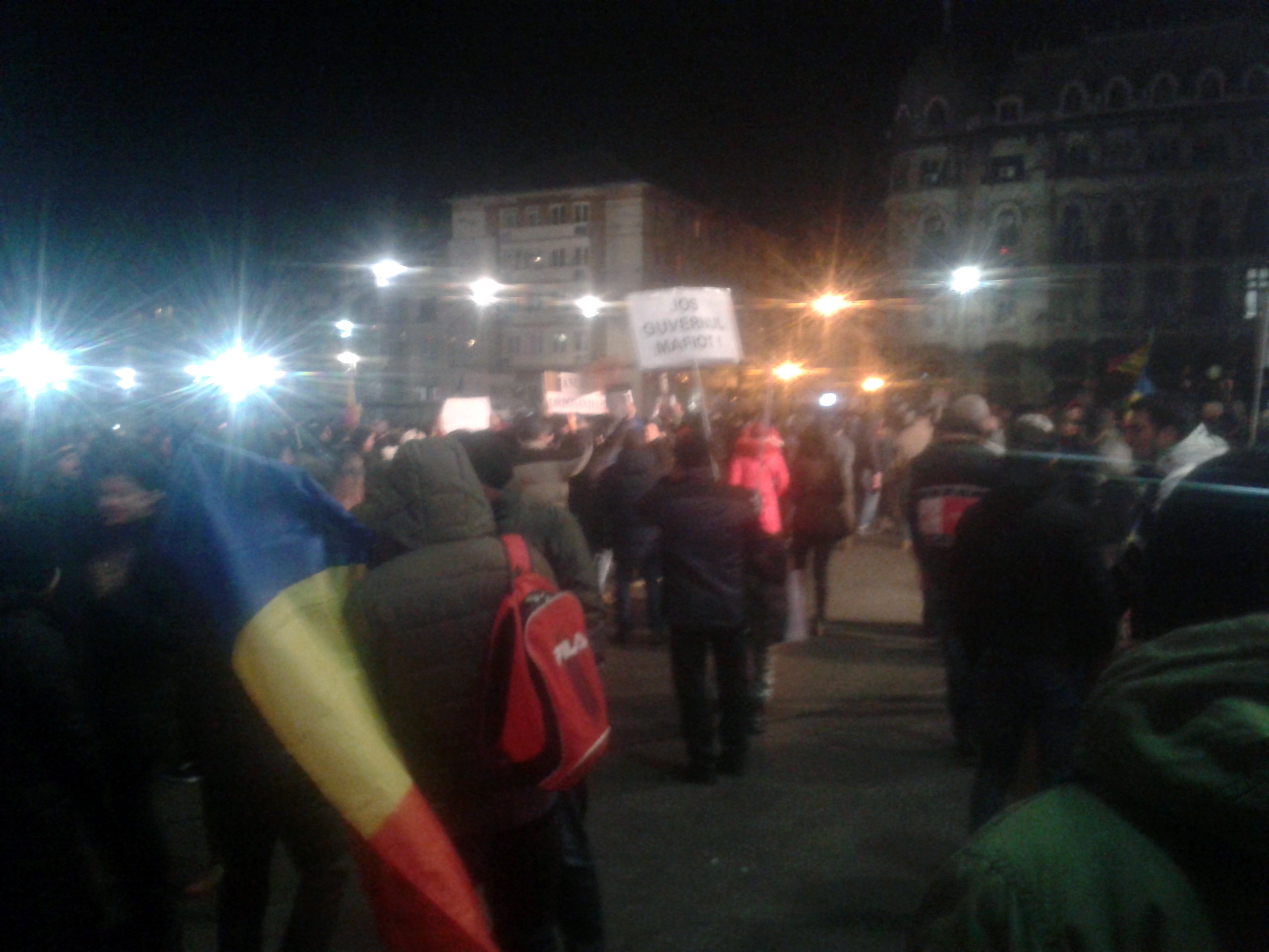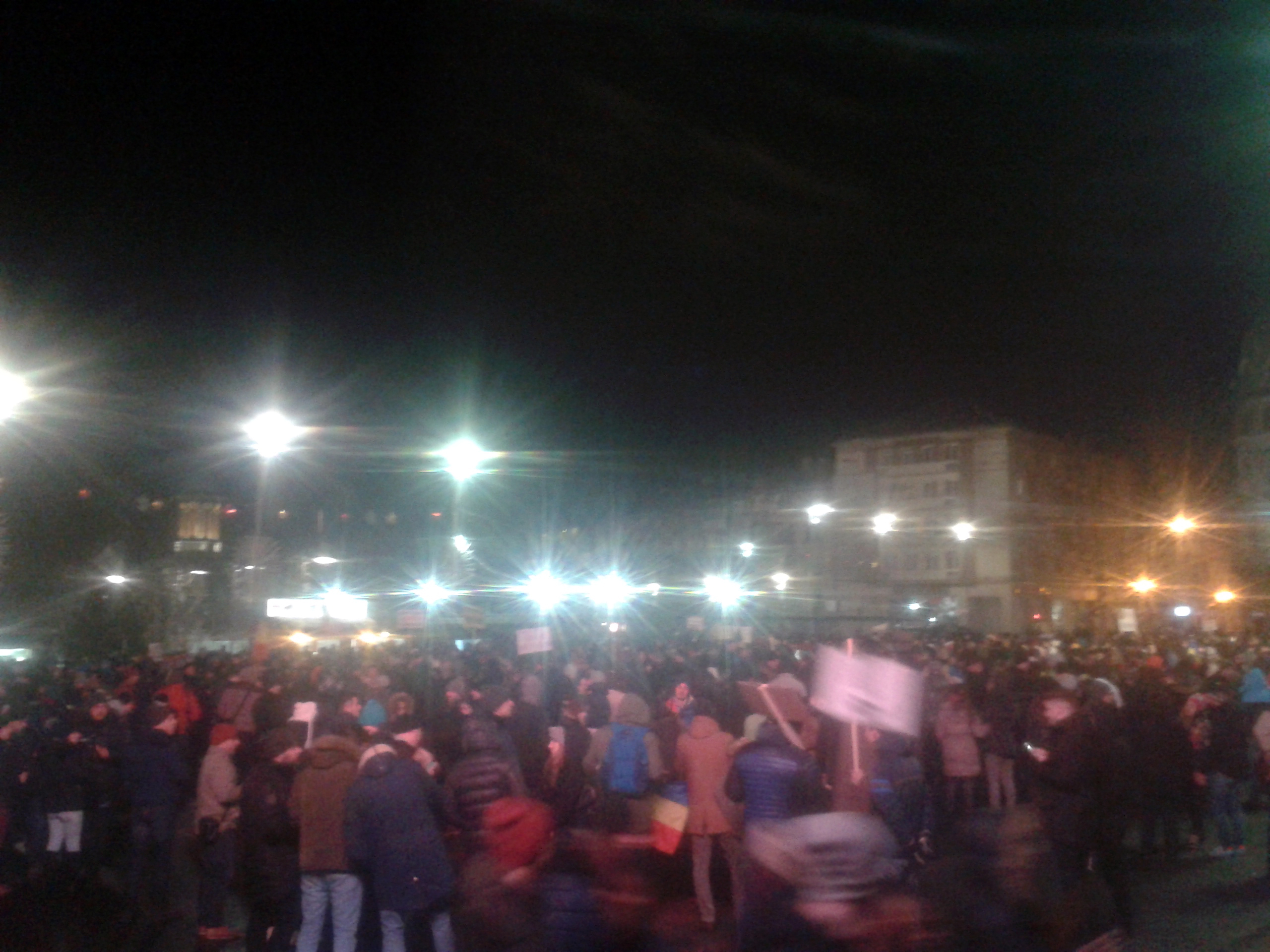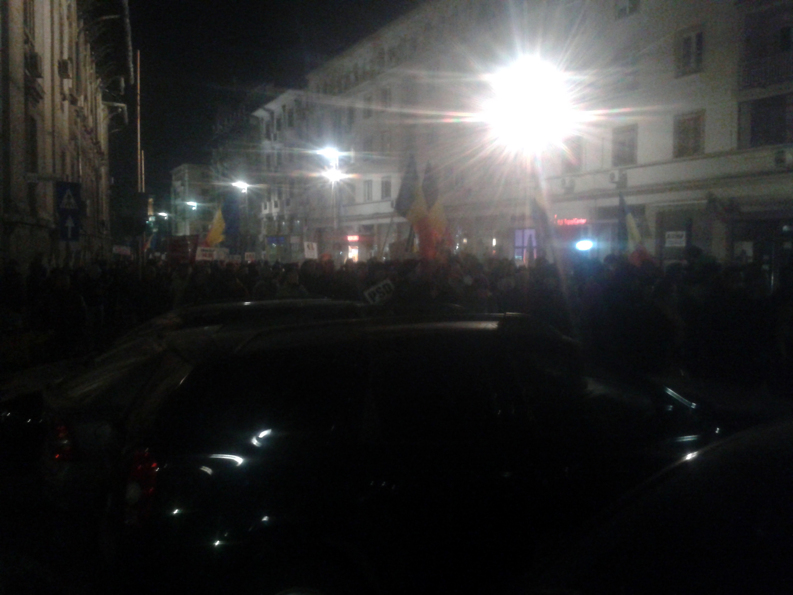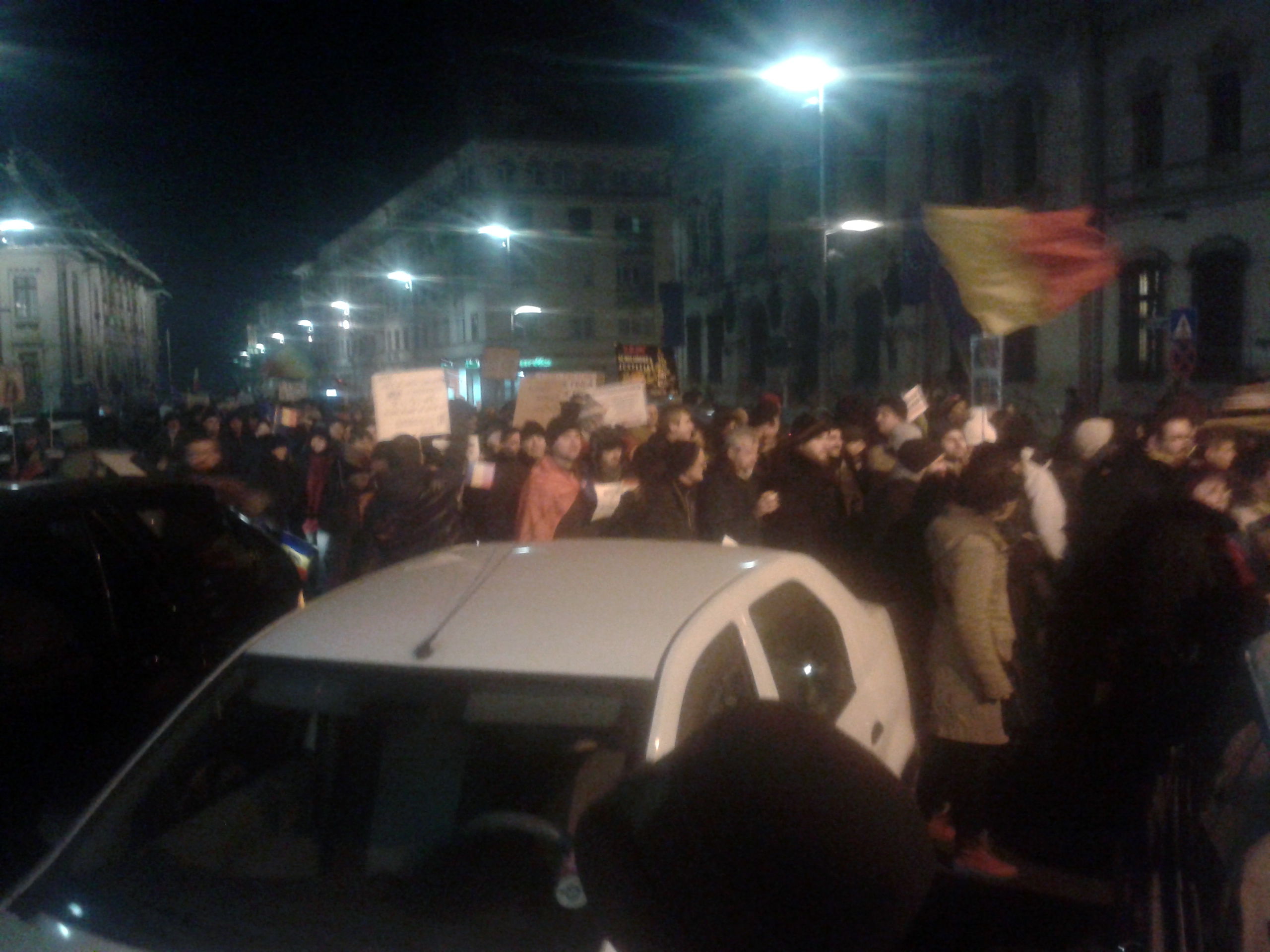Astă-seară Craiova s-a mobilizat din nou. Circa 10.000 de oameni în stradă. Cred că apreciez corect, pentru că pe un traseu de aproape 500 de metri, între Universitate și Piața Mihai Viteazu, strada a fost complet ocupată! După ce și-au dat întâlnire la Prefectură, manifestanții au pornit către Calea București.