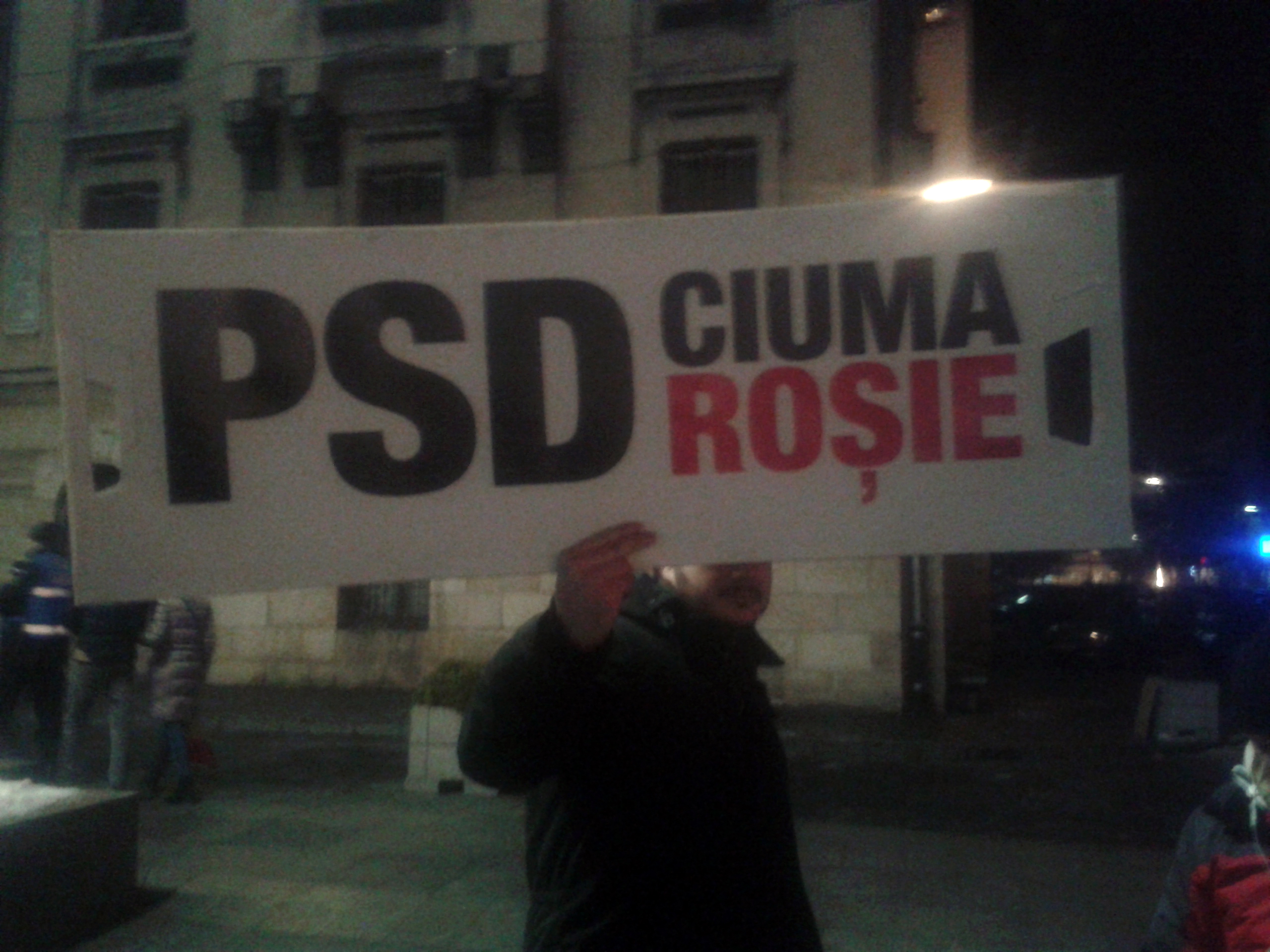 În rest, perfectă ordine, niciun incident. Pe pancarta unui protestatar scria: