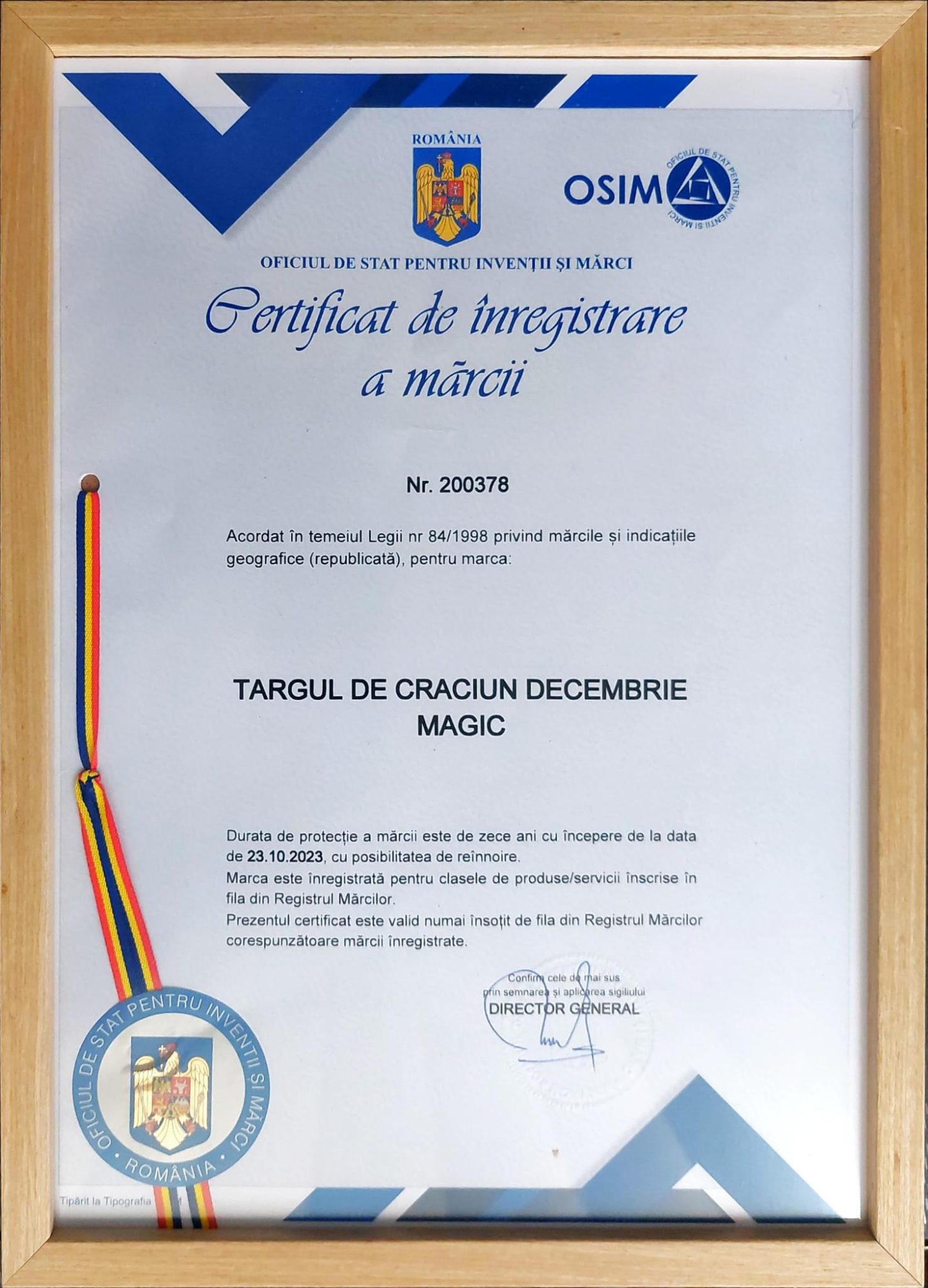 Din acest an, Târgul „Decembrie Magic” este marcă înregistrată la Oficiul de Stat pentru Invenții și Mărci (OSIM).