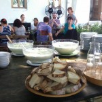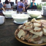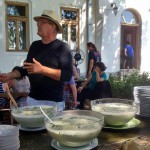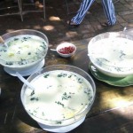 Supă cremă de praz:  Praz oltenesc, jumări de gasca afumată, smântână si pâine de casa