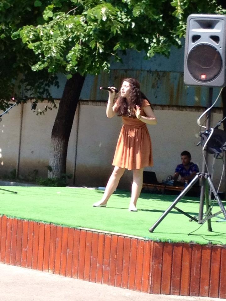 premii la Festivalul Interjudeţean “Vis de copil” au cântat azi 3 melodii populare: “Cui nu-i place dragostea”, “Morăriţa” și “Potpuriu”, adică un colaj de cantece populare .
