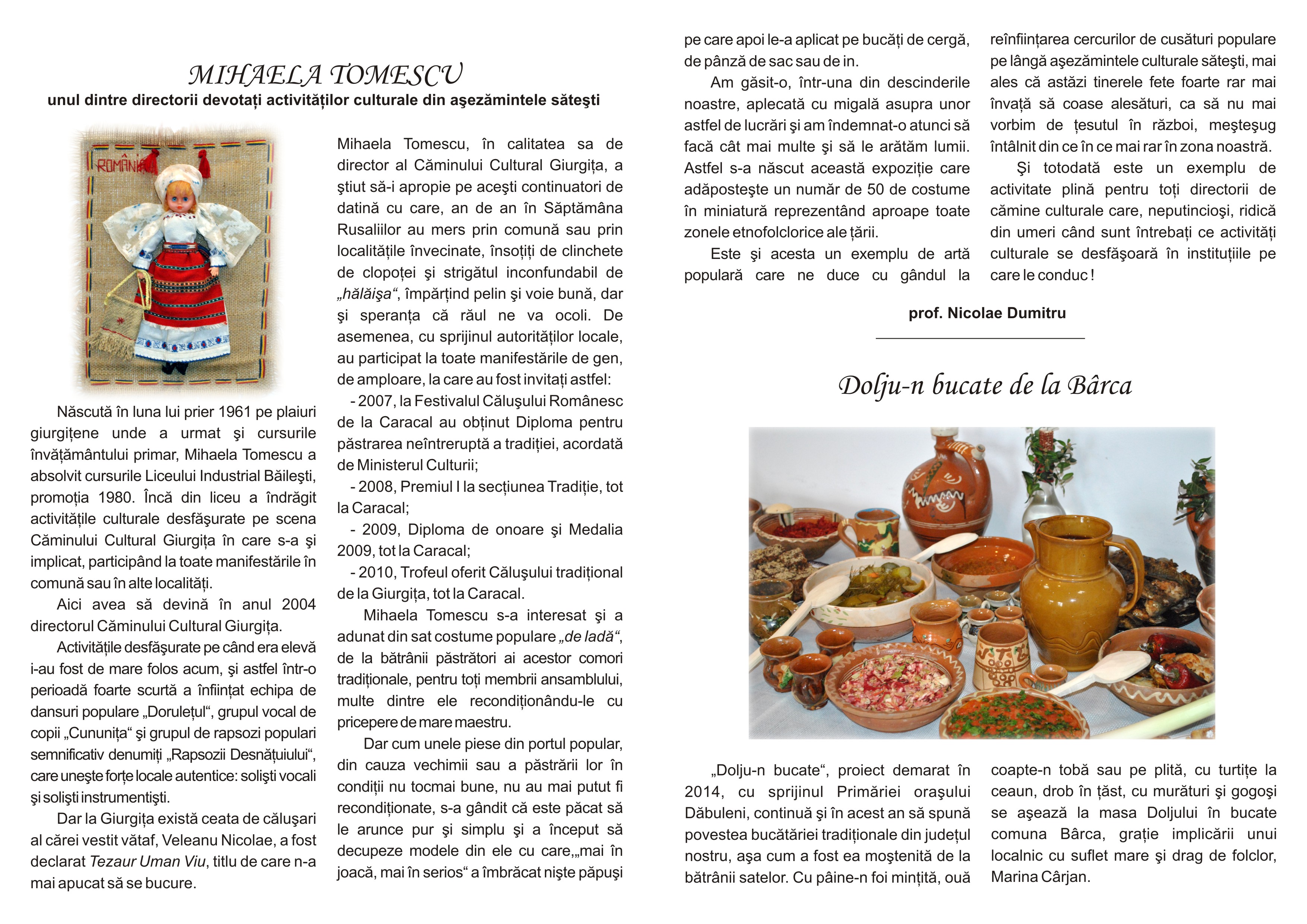 Este vorba despre “Straie populare în miniatură”, marca Mihaela Tomescu de la Giurgiţa şi “Dolju-n bucate” de la Bârca.