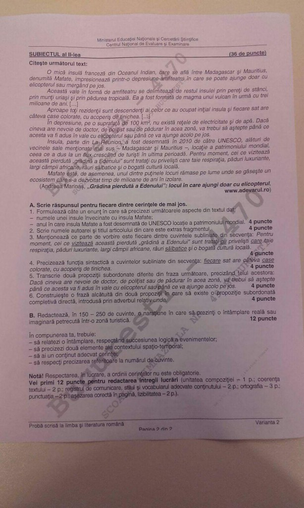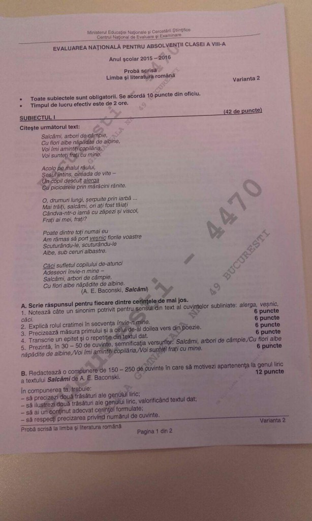 Subiectele care au picat astazi la Evaluarea Nationala!