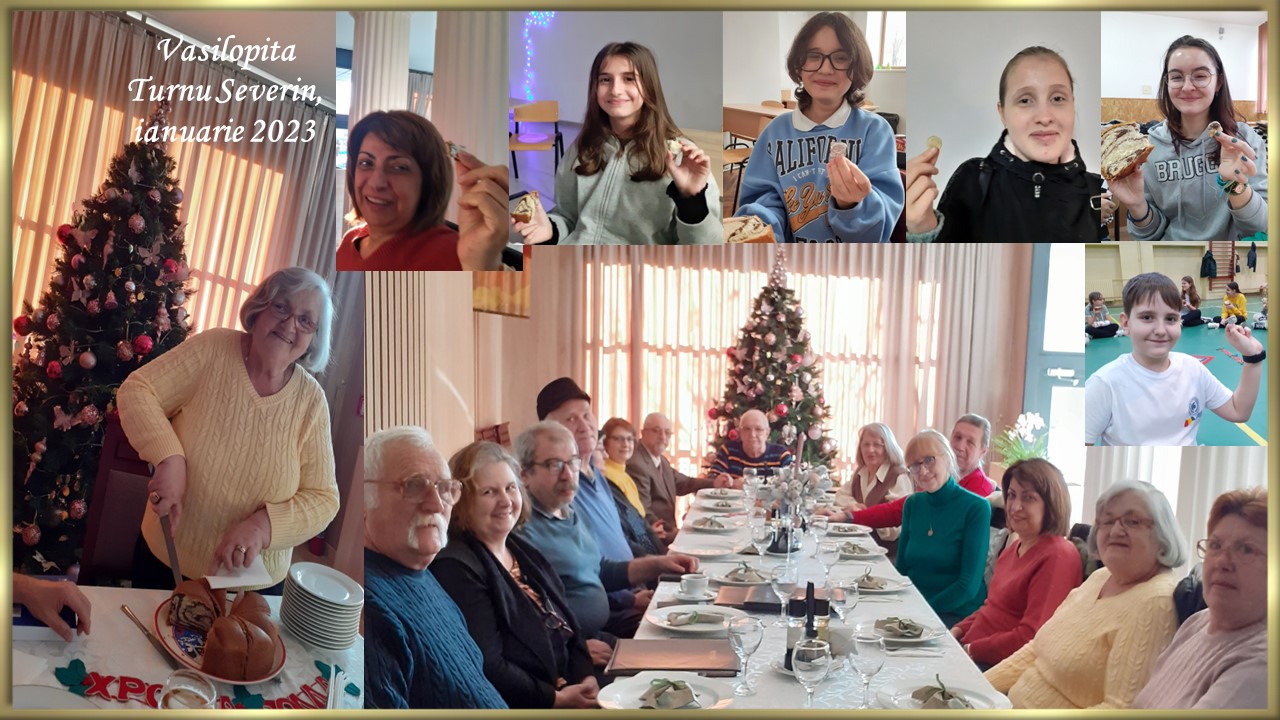 După cum ne-a informat doamna Paula Scalcău, președinta Comunității Elene Turnu Severin, în orașul de la malul Dunării, ca în fiecare an, în prima duminică după Sfântul Ioan, grecii din cadrul comunității elene s-au strâns în jurul Vasilopitei, să își facă urări și planuri pentru noul an, care abia a început. Faptele îndrăgitului Sfânt Vasile din Cezarea și povestea Vasilopitei au fost spuse, din nou, și la Cercul de Cultură și Civilizație Greacă de la Școala „Petre Sergescu”, unde „Prietenii lui Zorba” au dansat pentru prima oară, în anul 2023. Obiceiul atât de drag tuturor a fost respectat şi de elevii ce studiază limba neogreacă la Colegiul Național „Gheorghe Țițeica” și la Colegiul Național „Traian”. Anul acesta, au găsit bănuții norocoși ascunși în Vasilopite doamnele Erena Tereza și Angheliki Moței, Cristian Dinu (Școala „Petre Sergescu”), Ionelia Bogdan (C.N. „Gh. Țițeica”), Ana Oțet, Maria Degeratu și Alexandra Ungureanu (C.N. „Traian”),