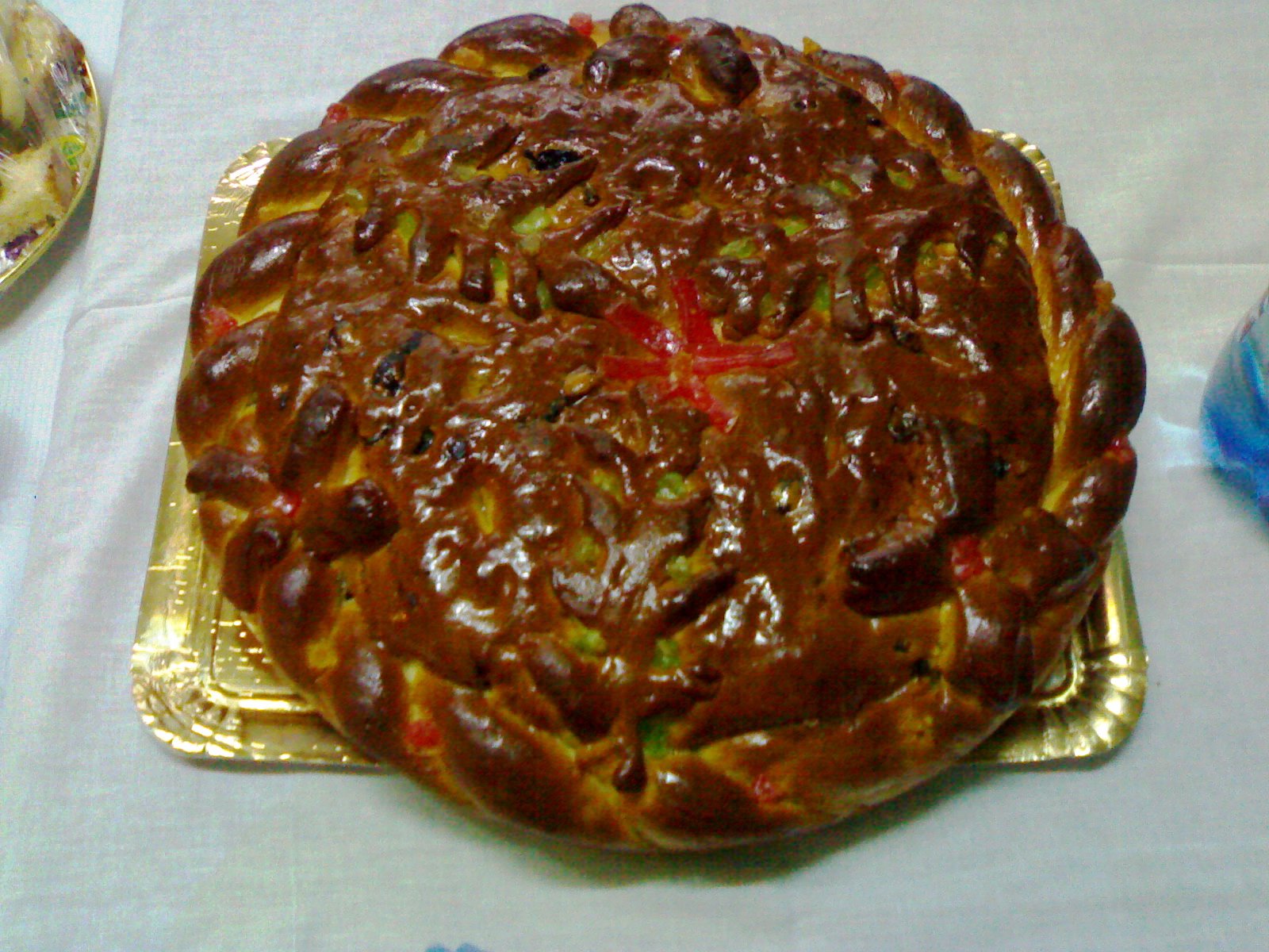 Cu acest prilej, în fiecare familie se face o plăcintă în care se pune un bănuț – potrivit tradiției, de aur sau de argint – iar după ce s-a copt, întreaga familie se adună în jurul mesei. Capul familiei taie câte o felie pentru fiecare, prima însă pentru iconostasul familiei, a doua pentru casă și, apoi, începând cu cel mai vârstnic, pentru fiecare participant la festivitate. Cel care va găsi bănuțul în felia de plăcintă, se spune că va fi norocos pe tot parcursul anului care începe. Obiceiul poate fi întâlnit sub diverse denumiri și alte popoare și provine din saturnaliile romane, serbare agricolă în timpul căreia erau oferite zeilor primele roade ale pământului și, concomitent, se alegea prin tragere la sorți regele saturnaliilor, care era considerat norocosul zilei și i se acordau onoruri.