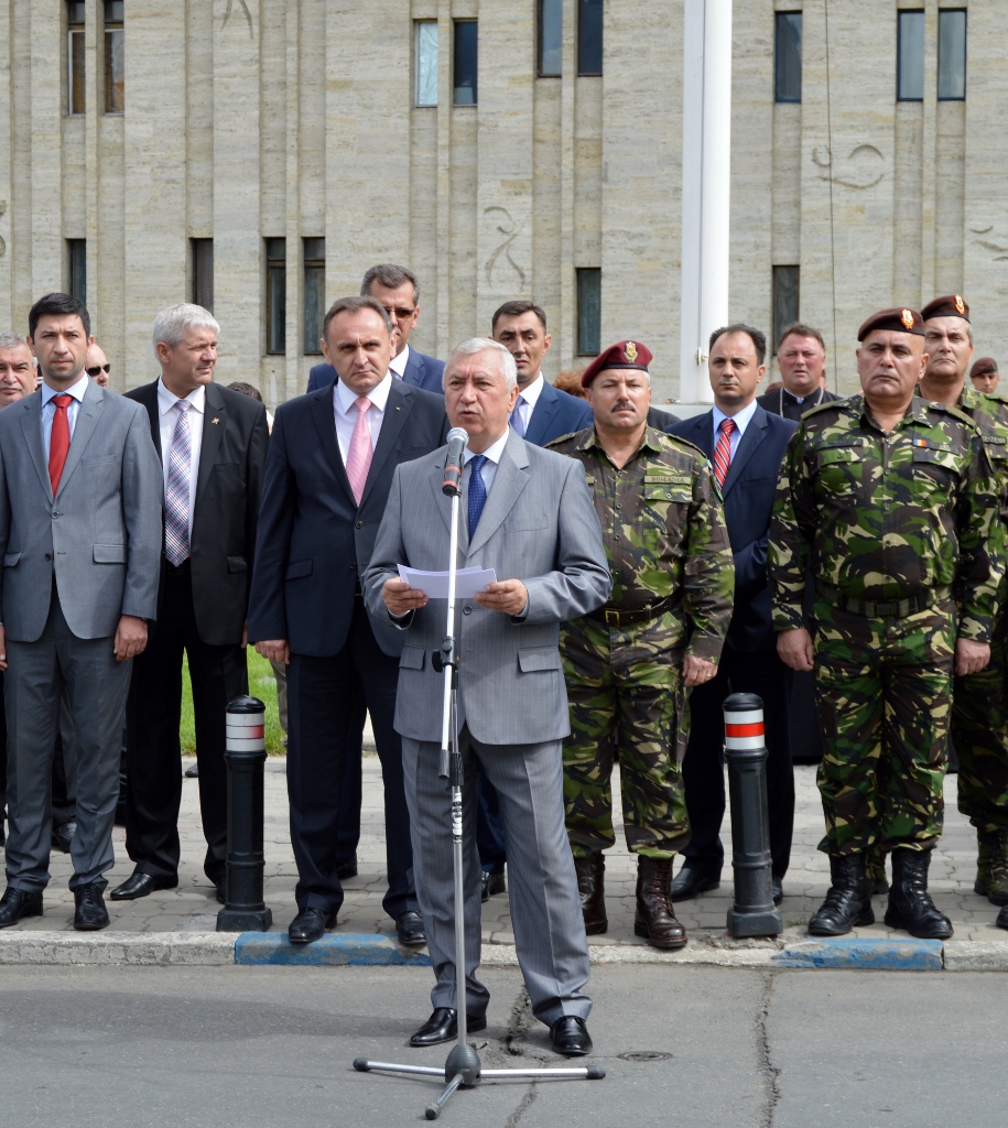 În calitate de președinte al Consiliului Județean Dolj, sunt onorat să mă aflu alături de dumneavoastră, astăzi, pentru a celebra împreună Ziua Drapelului Național și să pot adresa, cu această însemnată ocazie, tuturor craiovenilor şi doljenilor sincere urări de sănătate, bucurii alese și un călduros «La mulți ani!»“
